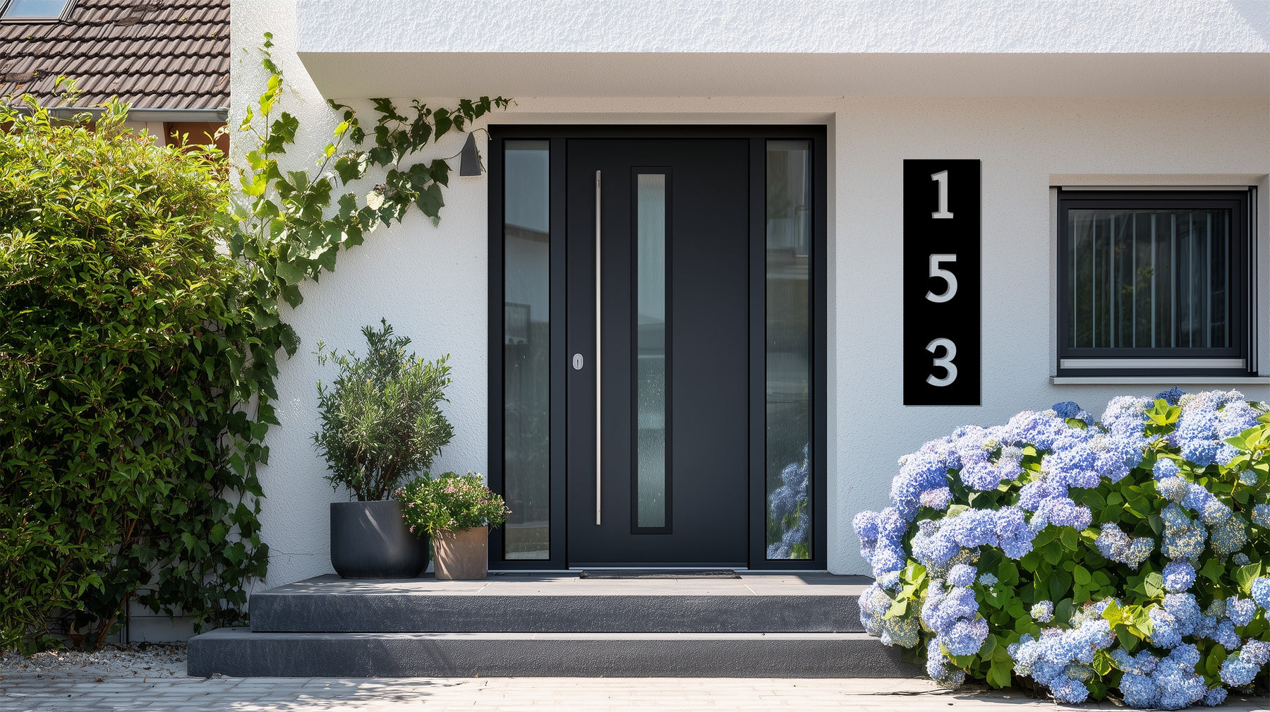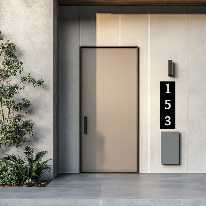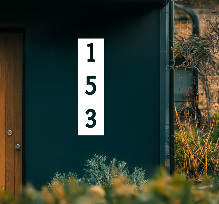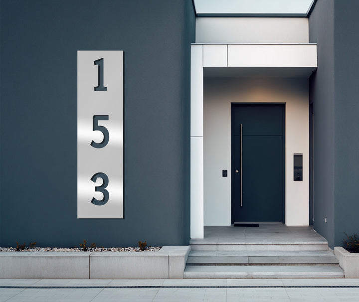 Minimalist vertical house numbers metal sign