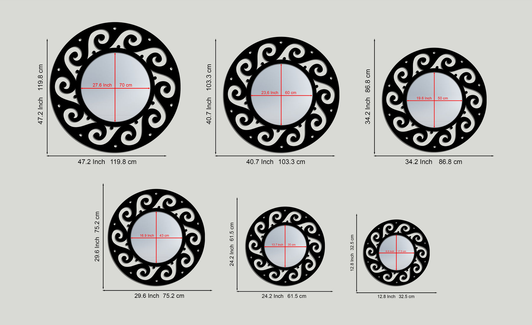 Circular mirror with swirl frame design