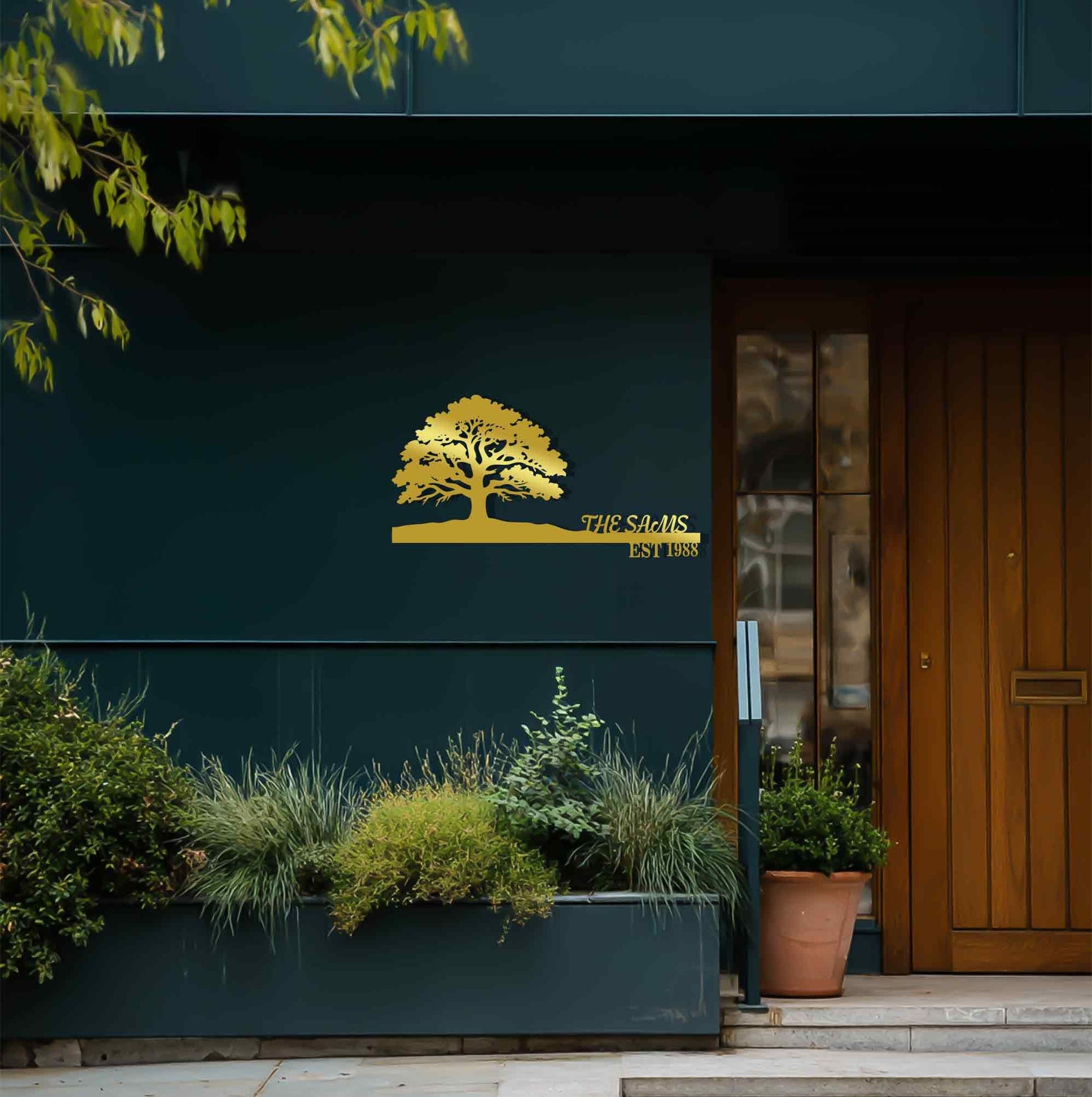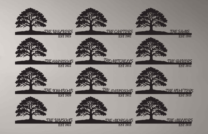 Personalized metal home name sign tree design