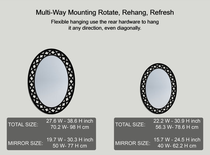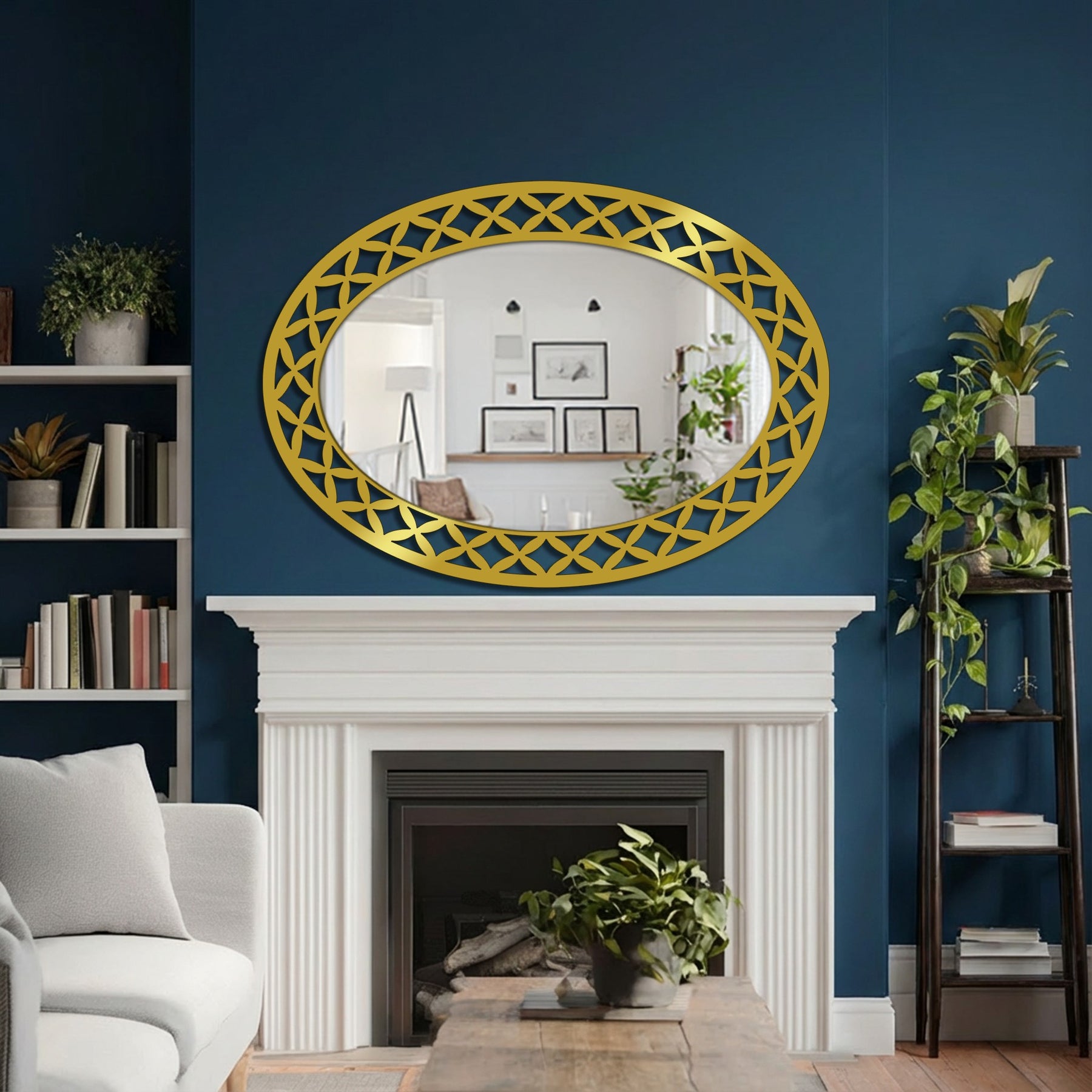 This striking oval wall mirror features a rhythmic petal-weave border that blends organic flow with sculptural geometry. The repeating petal-shaped cutouts create a lace-like frame that feels airy, contemporary, and beautifully detailed—perfect for adding a refined focal point to any room.