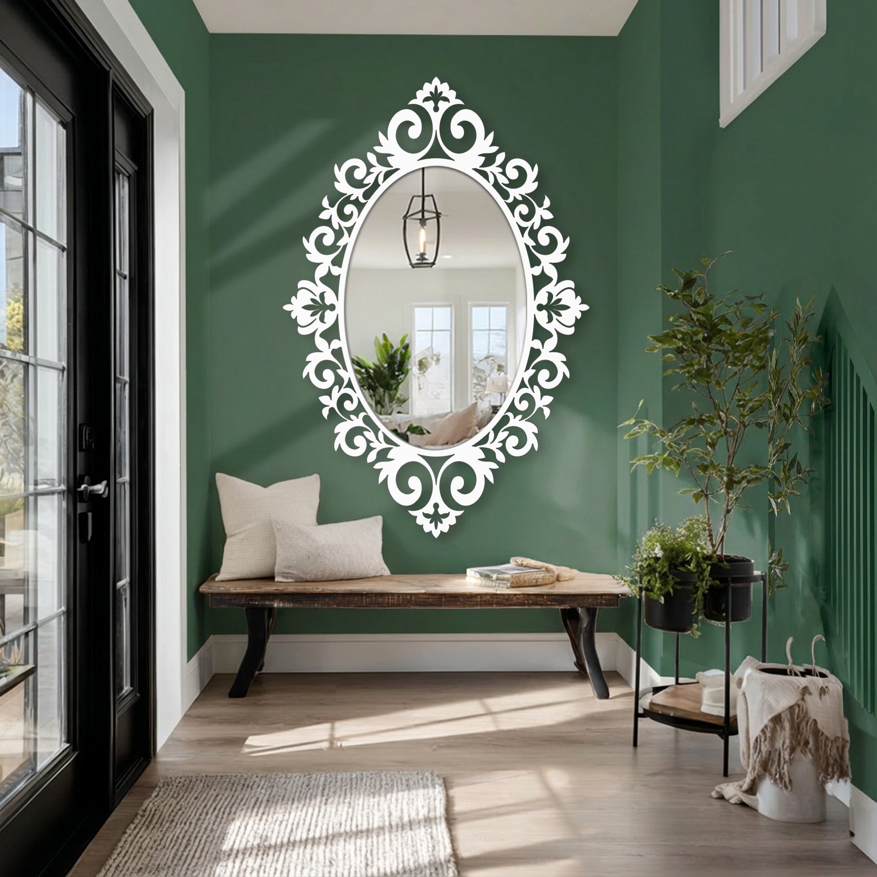 Perfect as a bathroom mirror, entryway mirror, or luxurious hallway mirror, this design reflects light beautifully while enriching your wall decor with graceful detail. The balanced mix of curls and leaf-inspired shapes brings personality without overwhelming the room, making it ideal for modern, classic, vintage, and eclectic interiors.