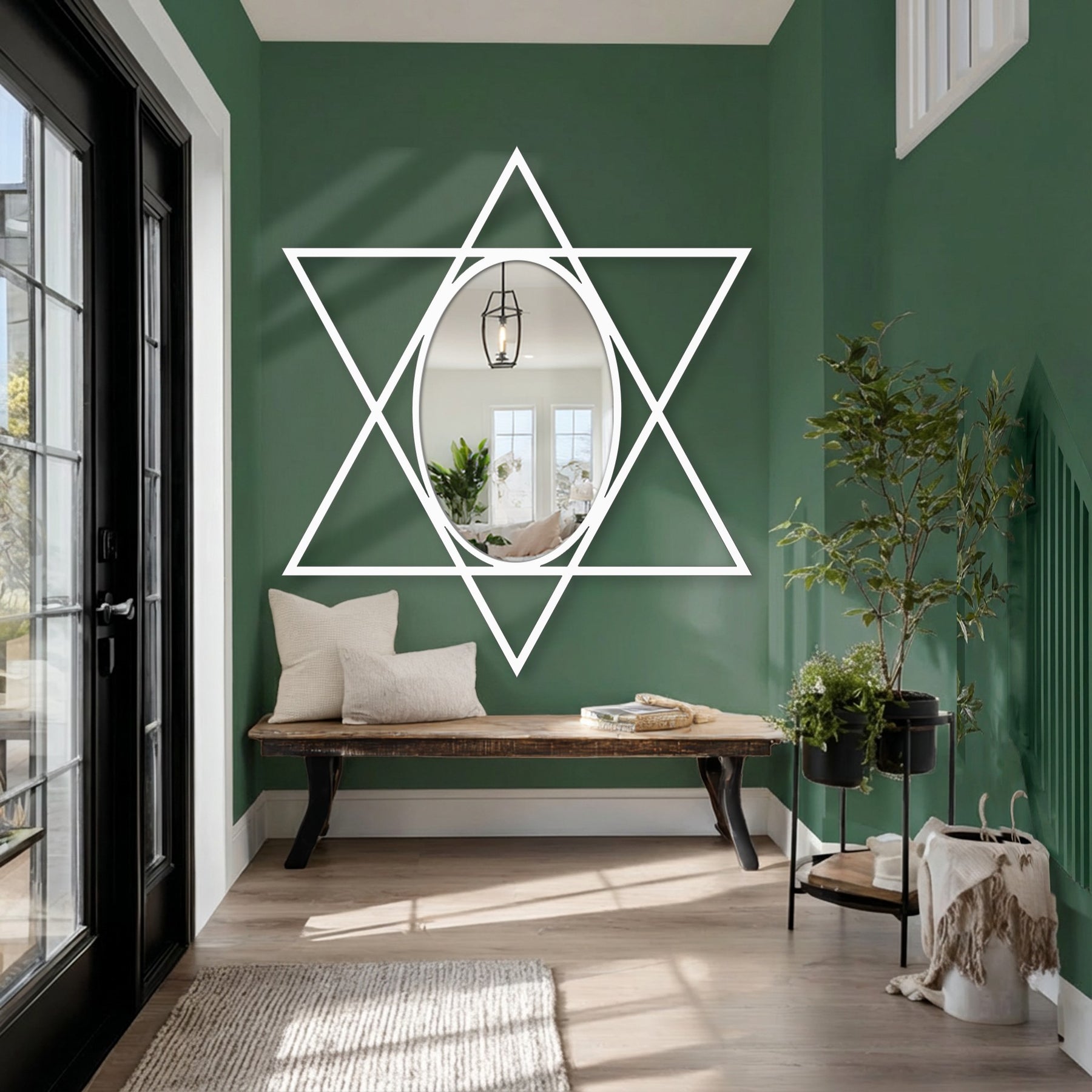 The Star Shape Geometric Oval Wall Mirror brings a dramatic blend of symmetry and curves to your walls.