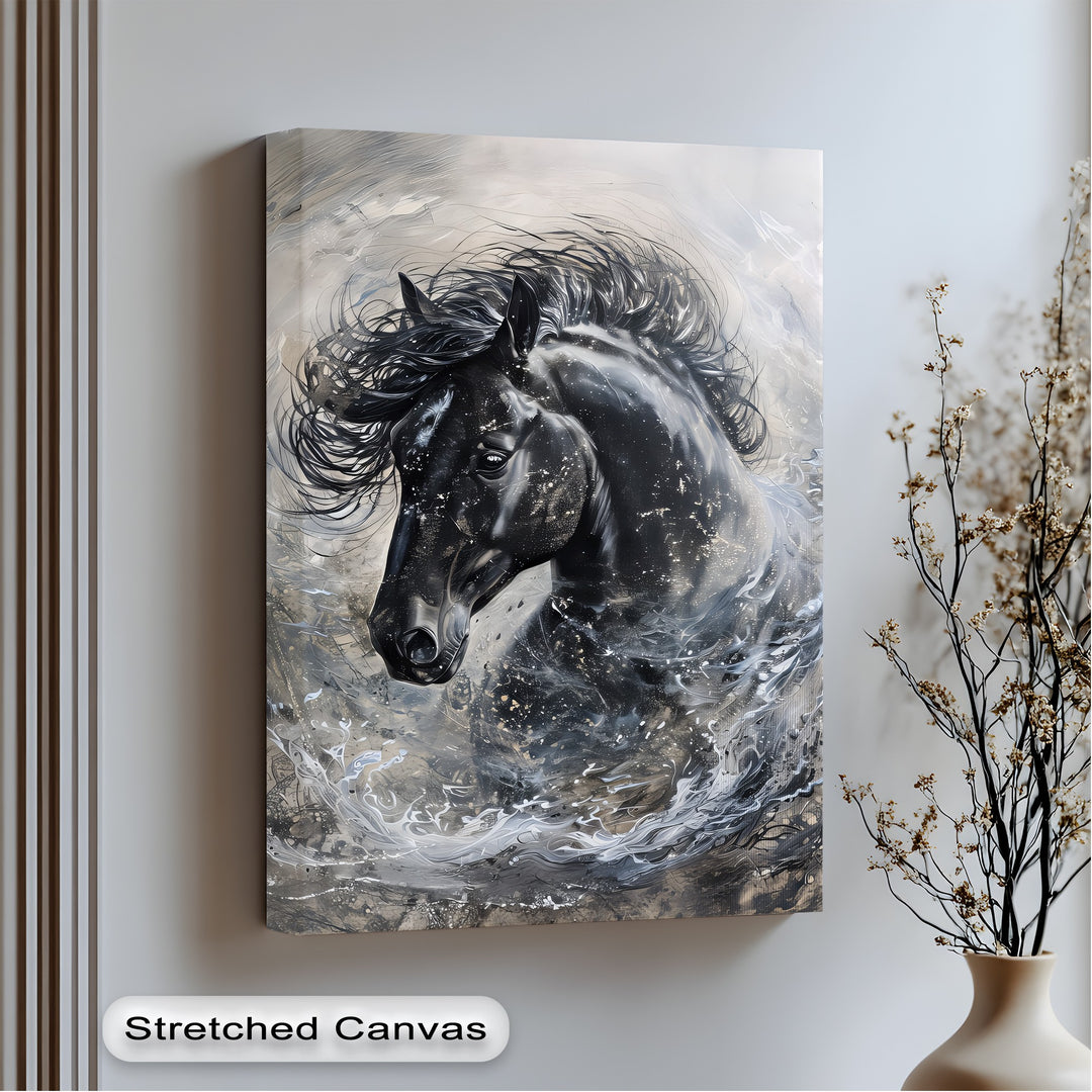 Adding horse wall art to your home accessories can greatly elevate your interior design. For a classic and elegant living room, pieces like “Black Horse on Desert” paired with dark wood furniture can create a sophisticated atmosphere. In contrast, decor ideas like using the “Galloping Horses” in a rustic or country-style room bring a touch of nature indoors. If you're looking to create a calming effect in the bedroom, consider using gentle and soothing horse figures like the “Graceful Horse.”