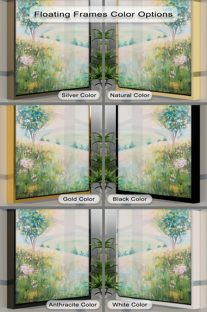 Unsere gerahmten Leinwandbilder Der 3,5 cm (1,38 Zoll) dicke, schwebende Rahmen erzeugt einen beeindruckenden Tiefeneffekt und verleiht Ihrem Kunstwerk ein luxuriöses, galerieähnliches Aussehen. Der in mehreren Farboptionen erhältliche Rahmen verleiht jedem Raum eine markante Definition und einen modernen Touch.