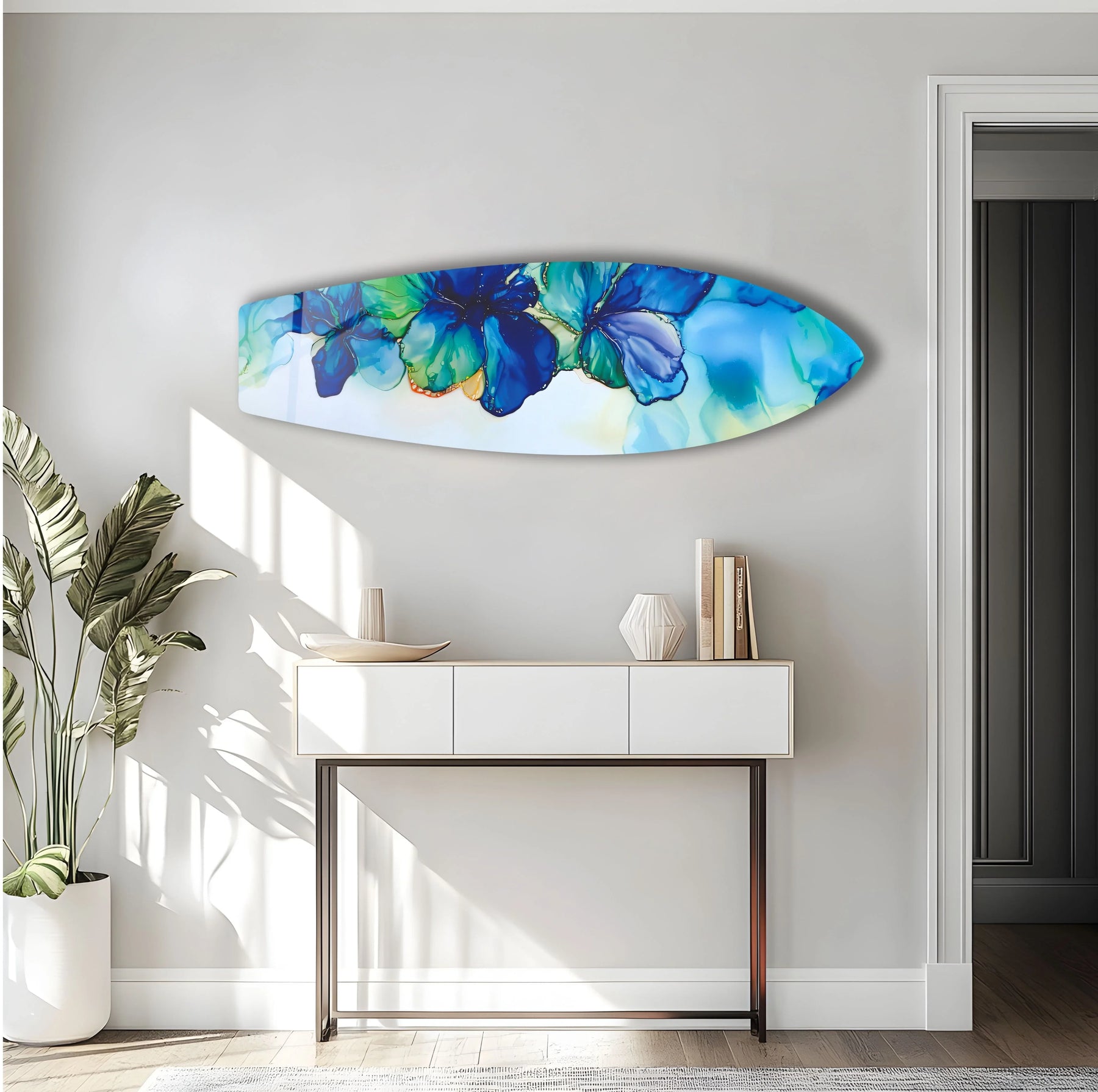 Blaue Alkoholtinte Blume Surfbrett Wandkunst