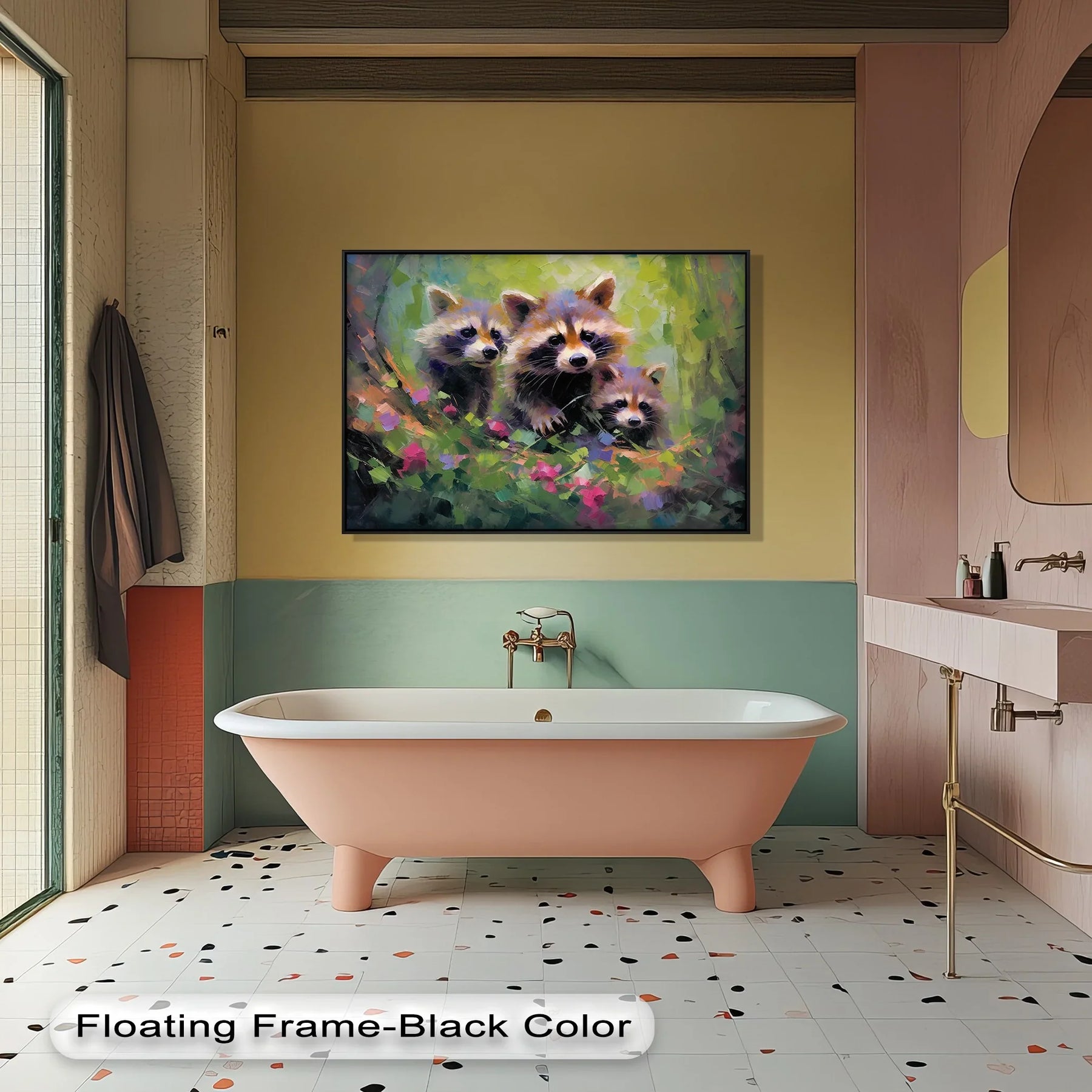🦝 Adorable Wildlife Scene – Three raccoons portrayed in a vivid, lively style