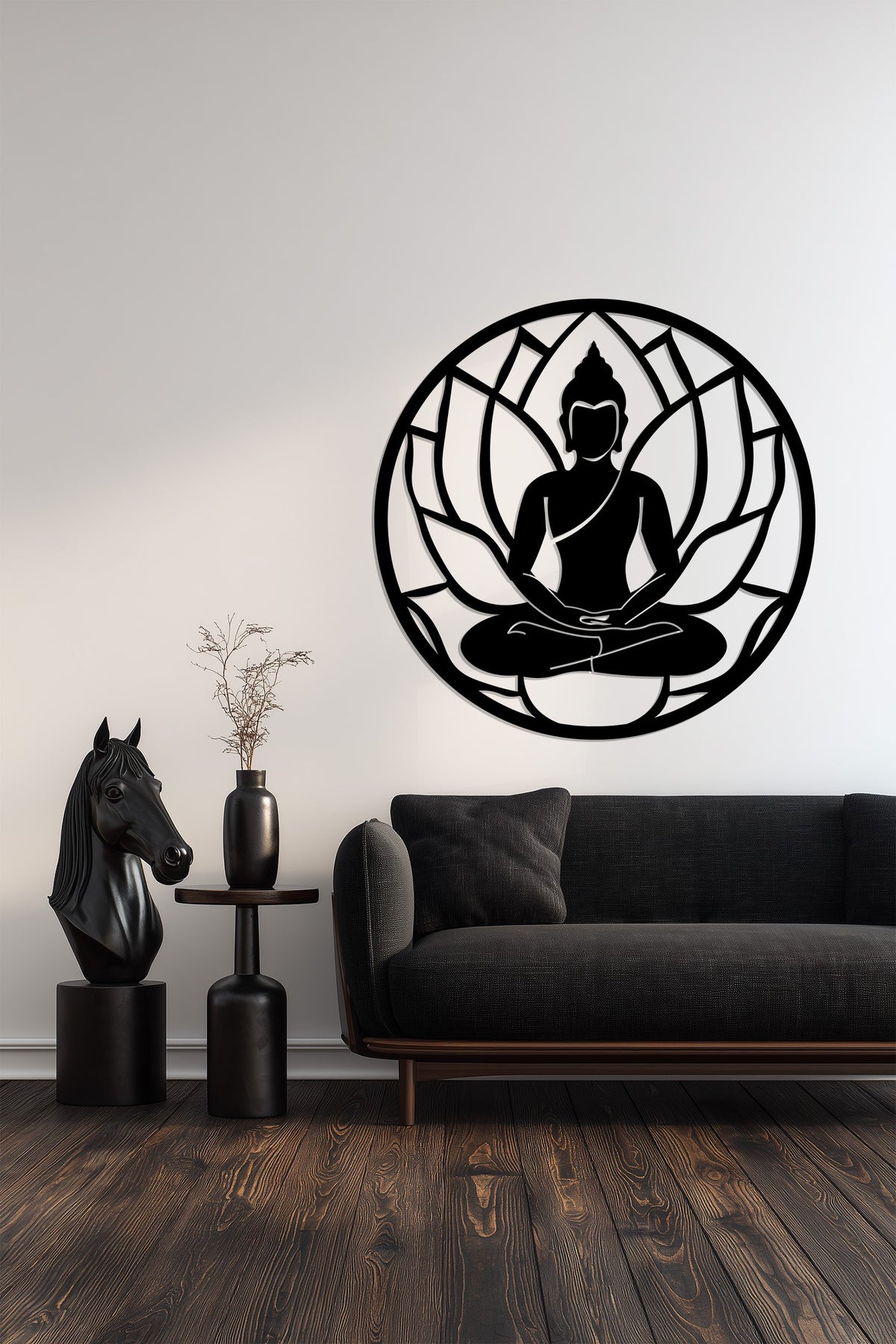 Perfect for yoga studios, meditation corners, or tranquil living spaces, the matte black metal finish adds a timeless elegance. It reflects not just art, but a way of living — simplicity, wisdom, and enlightenment.