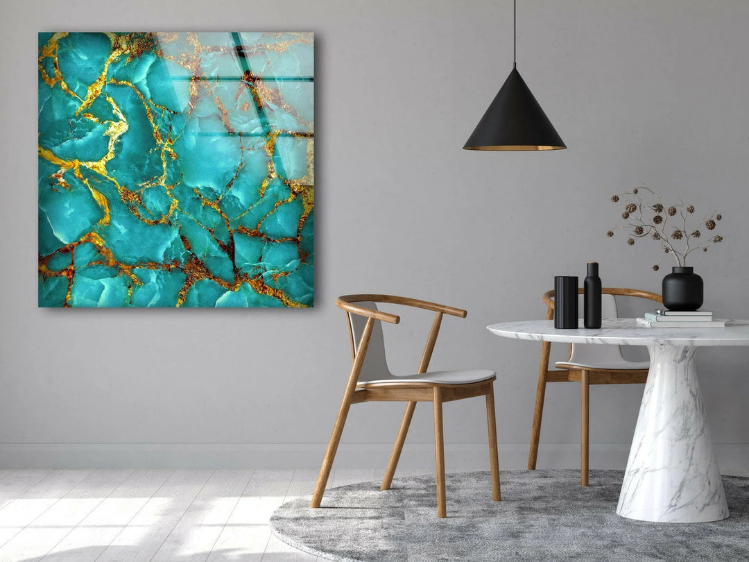 Verwandeln Sie Ihren Raum mit diesem atemberaubenden luxuriösen Marmor mit goldenen Adern abstrakte Kunstdrucke. Mit lebendigen Türkistönen und komplizierten goldenen Adern, dieses Glasbilder fängt die Eleganz und den Reichtum von echtem Marmor ein und verleiht jedem Raum eine raffinierte, hochwertige Note. Dieses Stück eignet sich perfekt für moderne und zeitgenössische Innenräume und setzt ein markantes und zugleich edles Statement in Wohnzimmer, Schlafzimmer oder Büros.