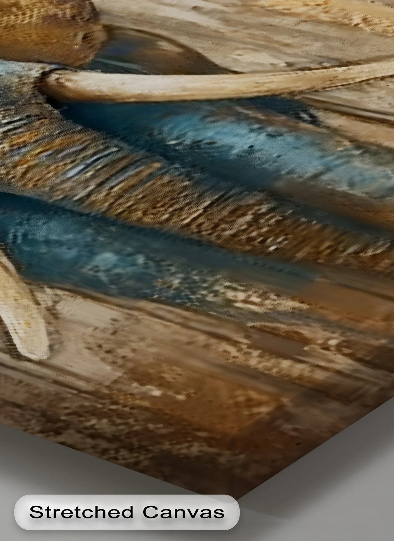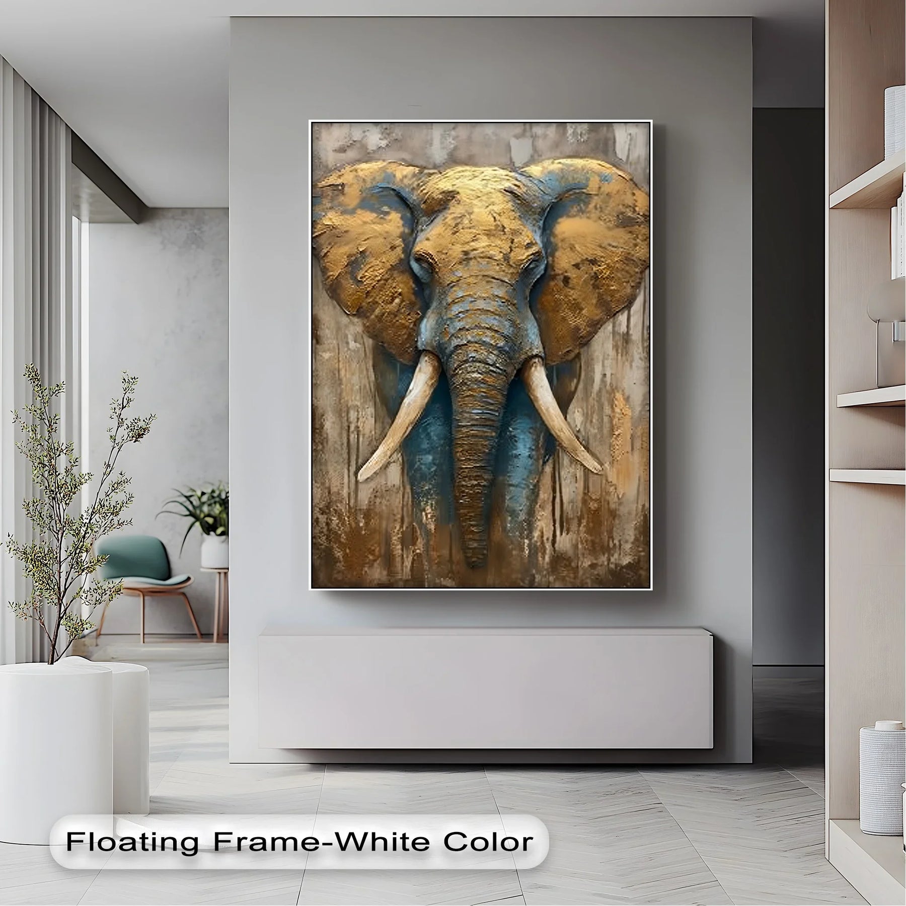 Add bold character and powerful symbolism to your space with this striking elephant head canvas print. Featuring earthy golden and blue tones with textured detailing, this artwork captures the nobility and strength of the elephant—an iconic symbol of wisdom, loyalty, and protection. Perfect for contemporary or rustic interiors, it makes a captivating focal point in living rooms, offices, or entryways.