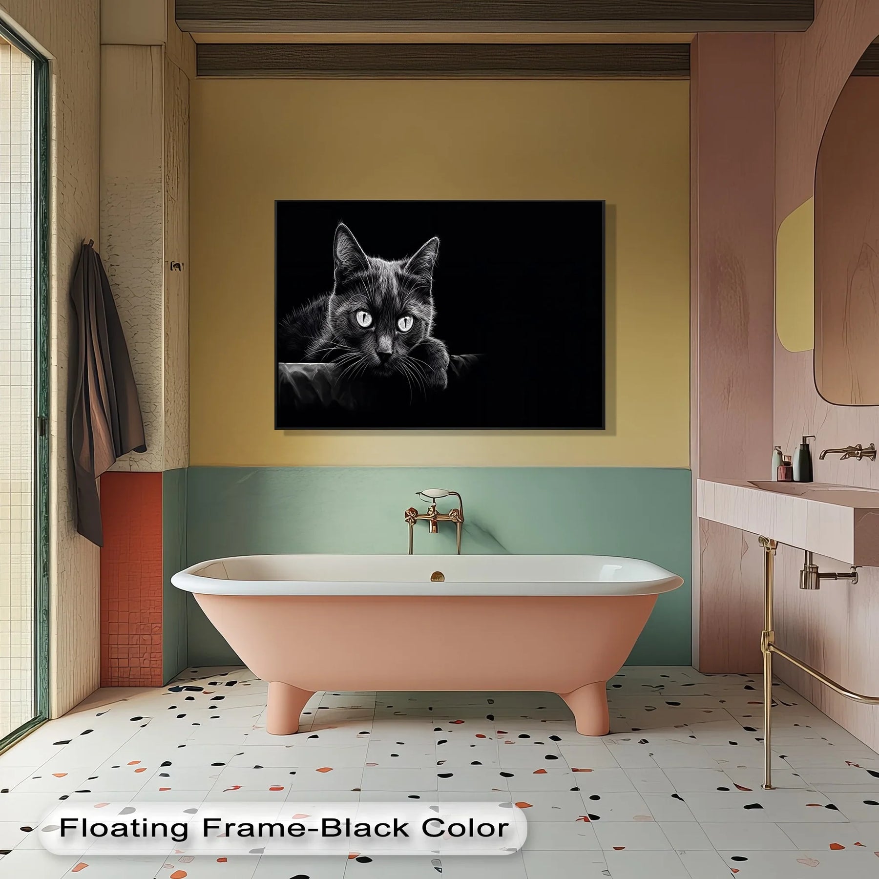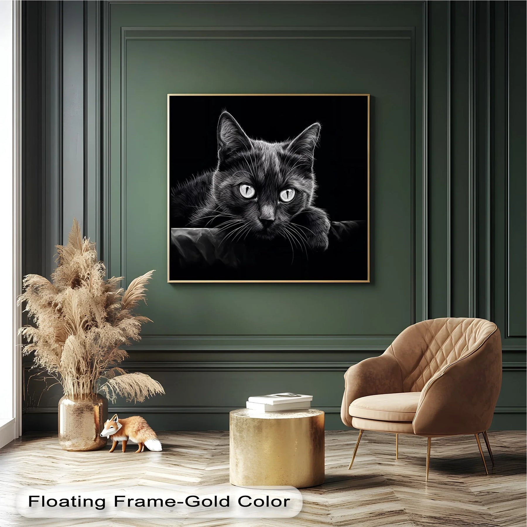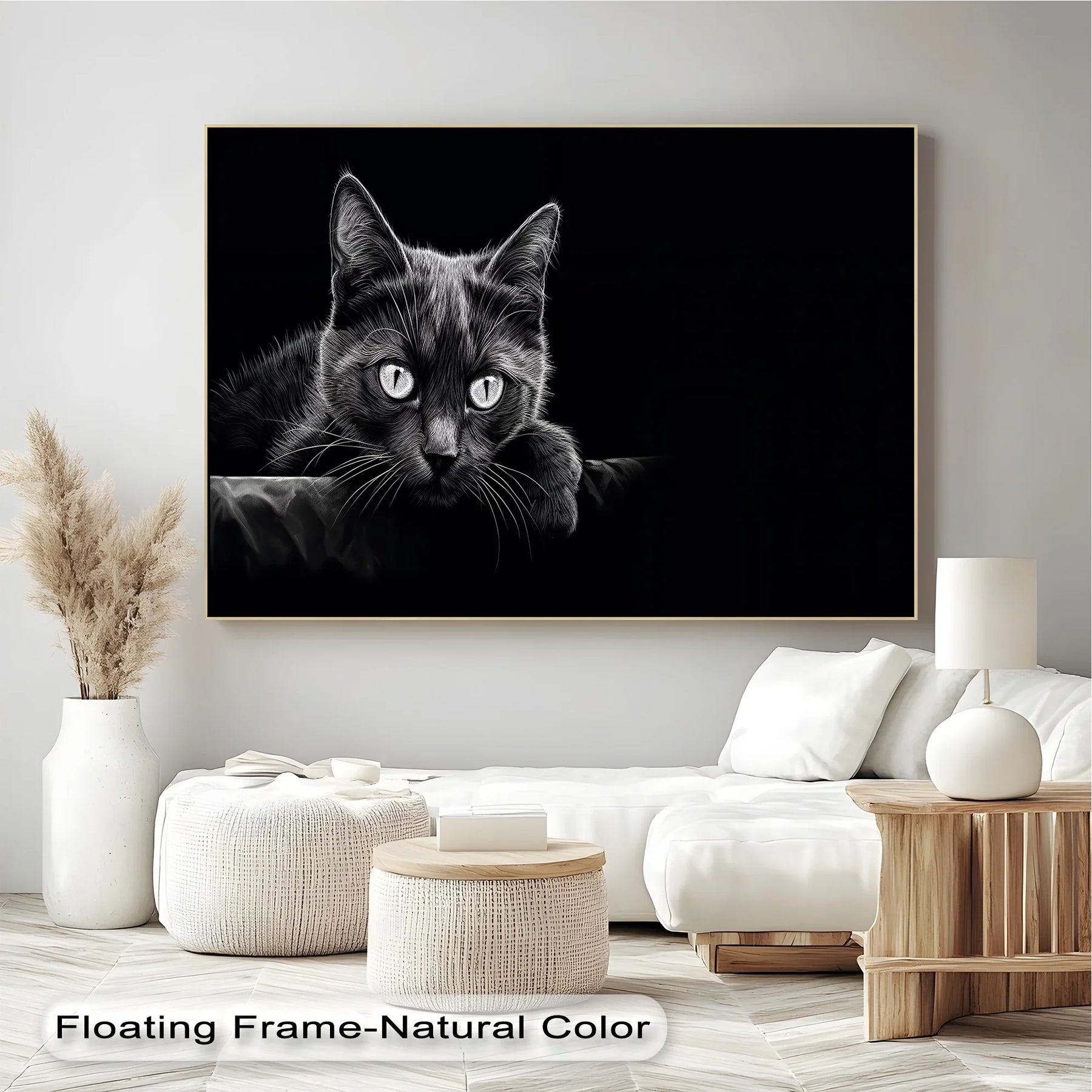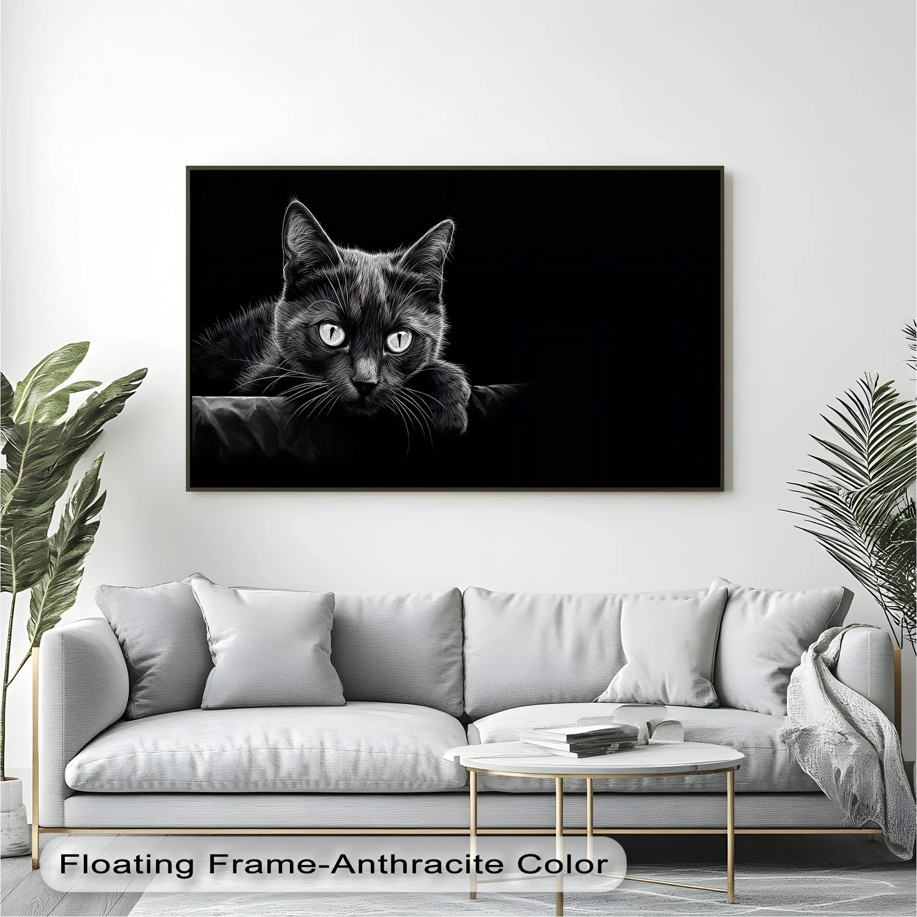 A dramatic and mesmerizing tribute to feline mystery, this black cat canvas print captures a moment of stillness and power. Rendered in striking monochrome against a deep black background, the artwork draws all attention to the cat’s glowing eyes and graceful silhouette. Perfect for minimalistic interiors or lovers of elegant animal portraits.