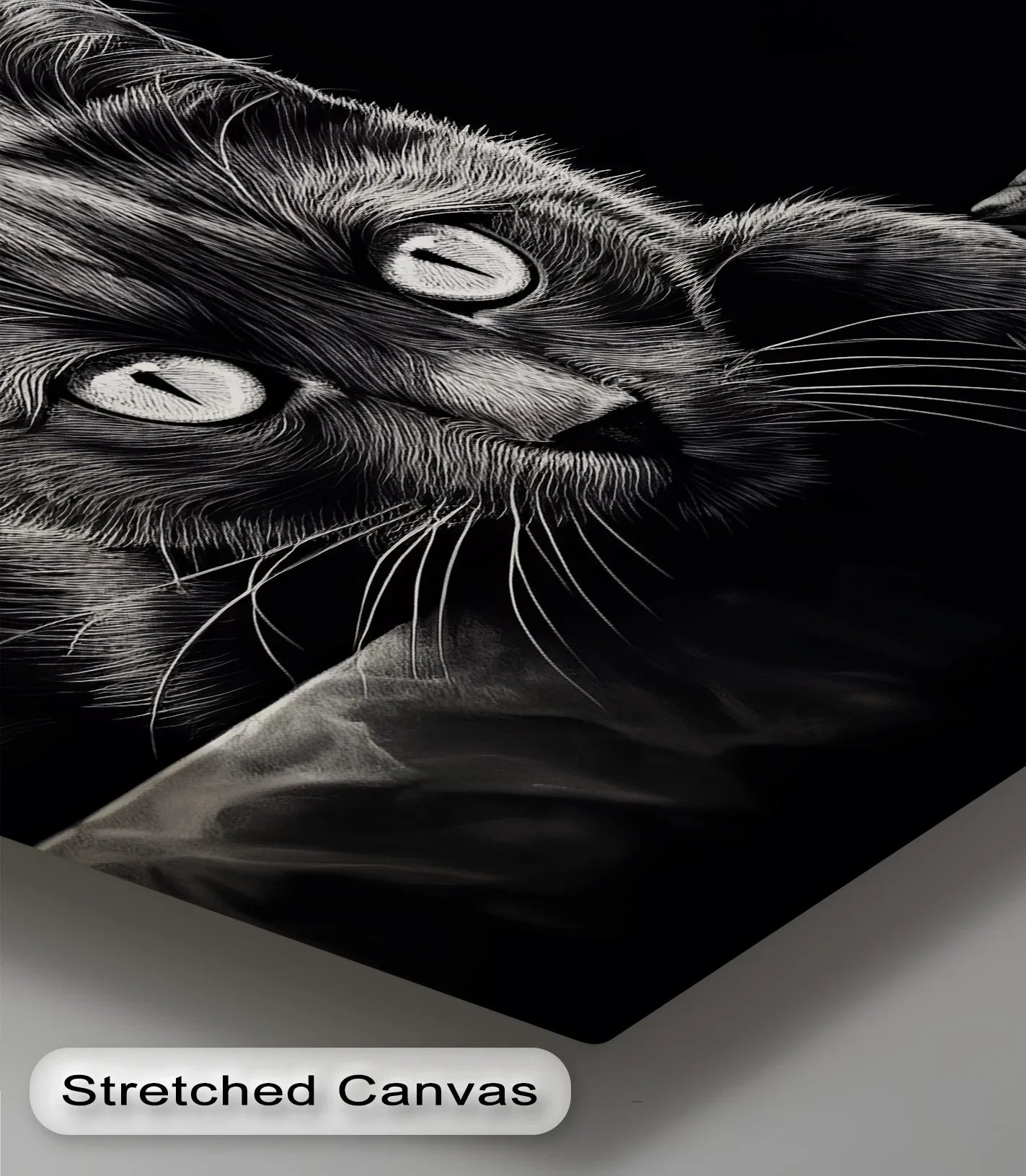Midnight Gaze – Black Cat in Monochrome Shadow Cat Canvas Print
