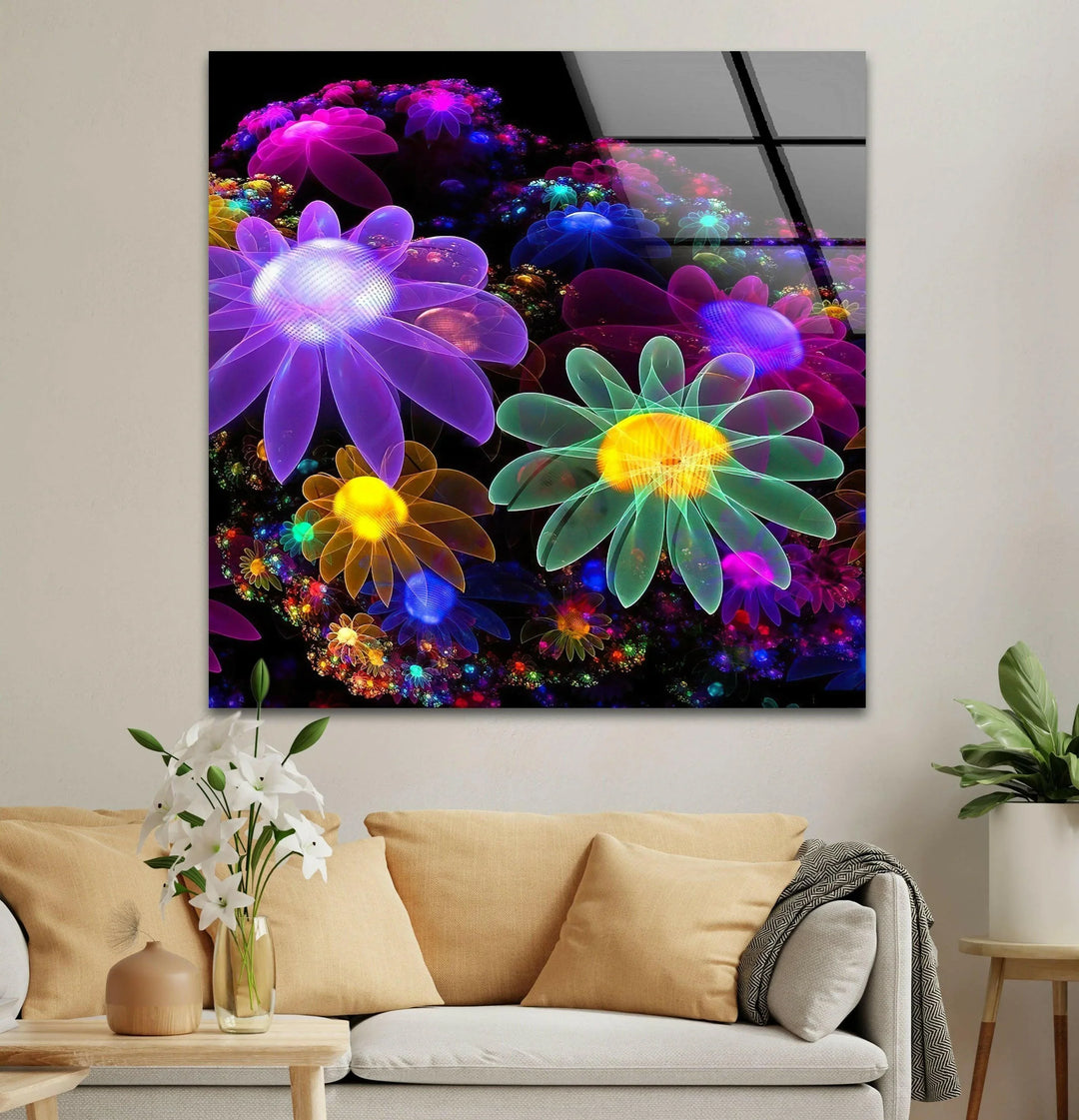 Erhellen Sie Ihren Raum mit Neonblumen Glasbilder