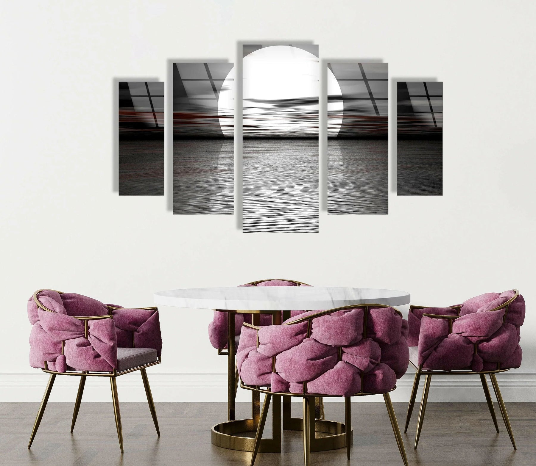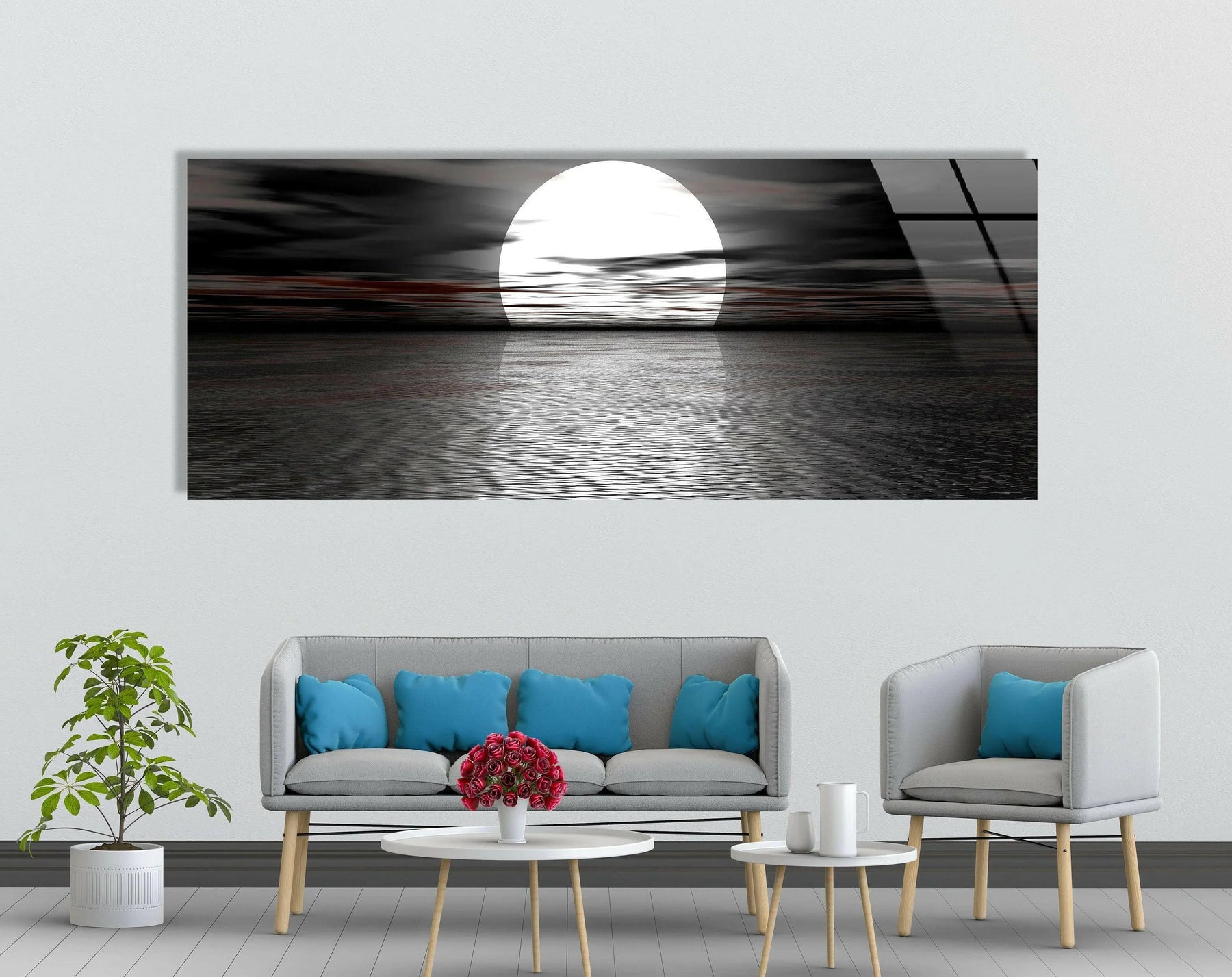Schwarz-Weiß-Vollmond-Meereslandschaft Glasbilder – 5 Stück