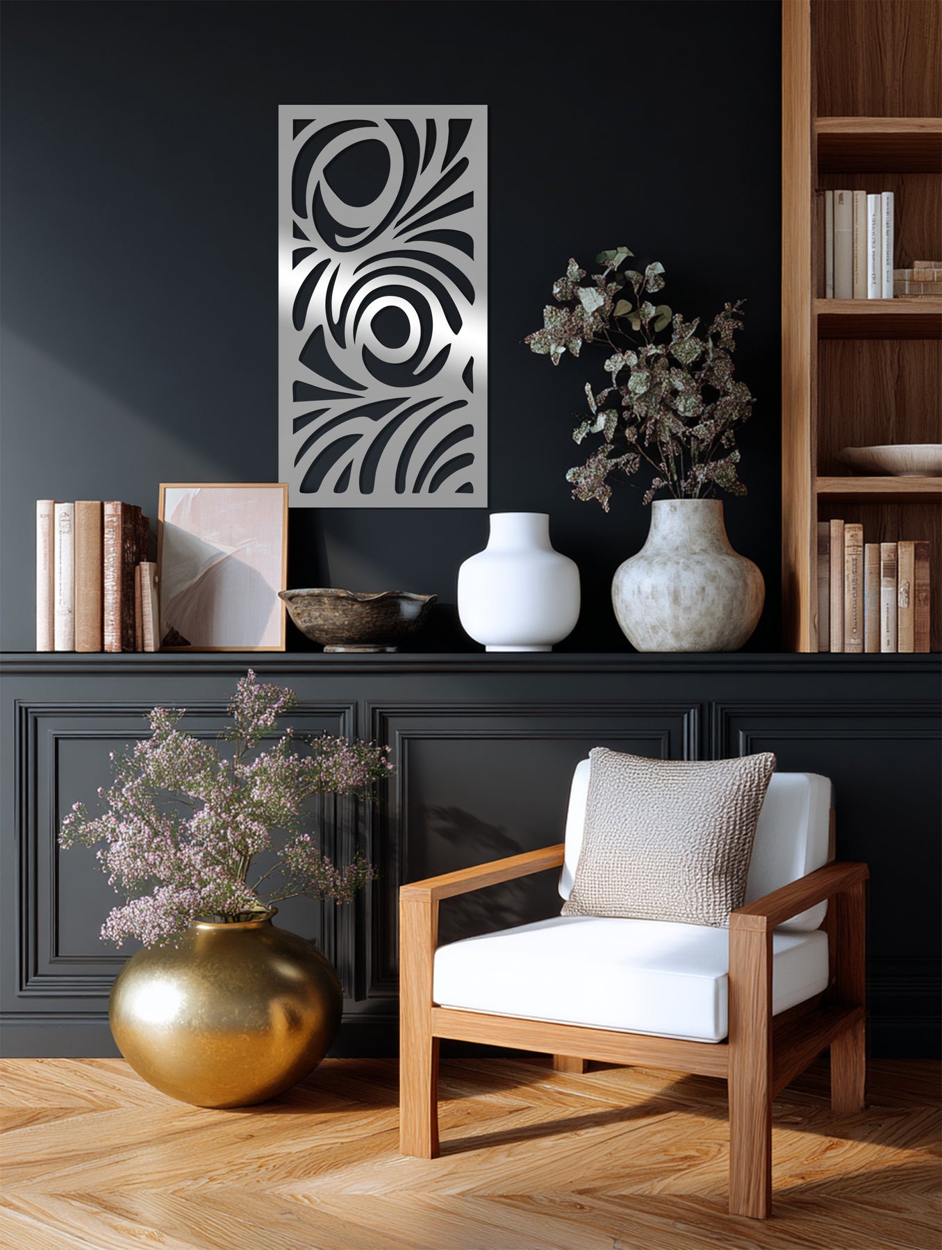 Transform your interiors with this Abstract Swirl Metal Wall Art, featuring bold circular and flowing patterns. Designed in sleek black, this metal wall decor adds modern sophistication and artistic energy to any room. Perfect for those seeking abstract metal wall art, a striking metal wall hanging, or a contemporary wall sculpture for the living room, bedroom, hallway, or office.