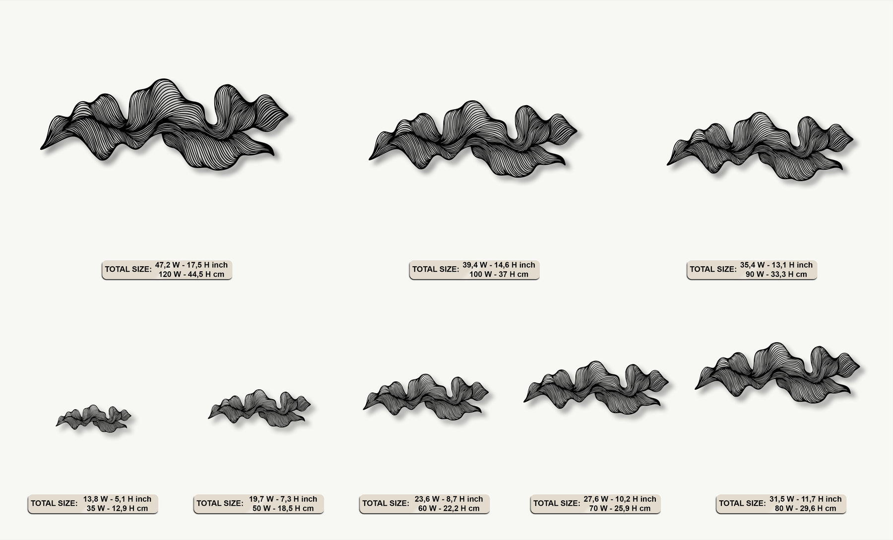 The darkest area reveals an abstract wave flow metal art for wall, featuring undulating black lines that create a modern line decor.