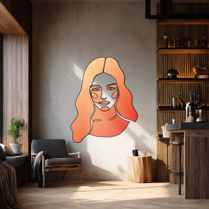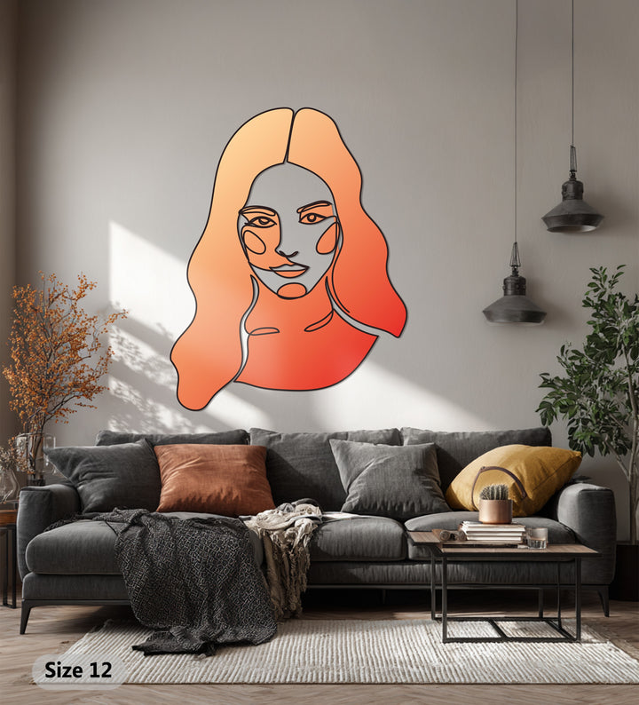 Embrace simplicity and feminine elegance with the Abstract Woman Line Art Metal Wall Art. Designed with fluid, single-line artistry and warm gradient tones of coral and peach, this piece celebrates beauty, balance, and strength in minimal form.