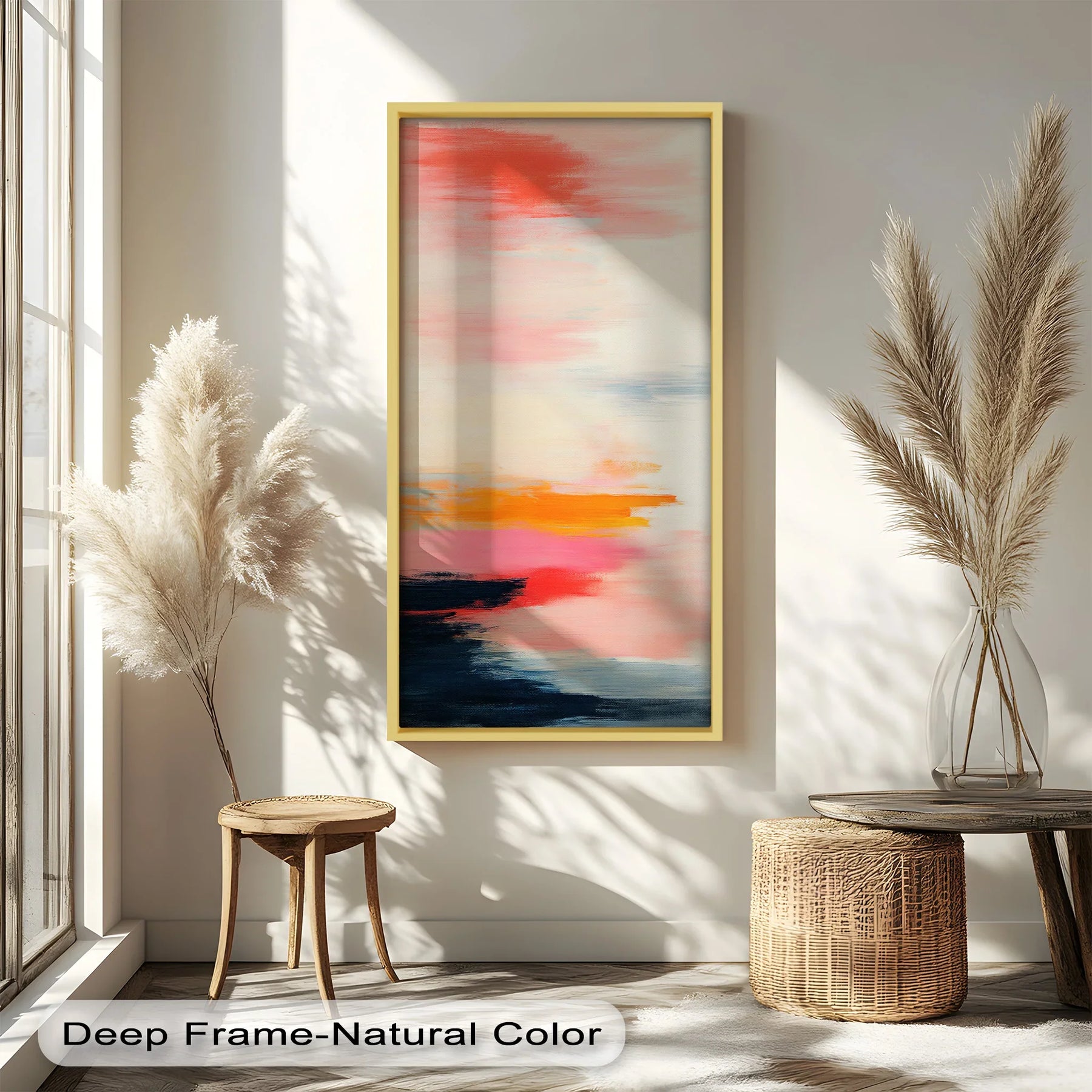 Sein minimalistischer und dennoch ausdrucksstarker Stil macht es perfekt für moderne Interieurs, Häuser an der Küste oder ruhige Schlafzimmeroasen – überall dort, wo Sie die Ruhe eines Sonnenuntergangs ins Haus holen möchten.