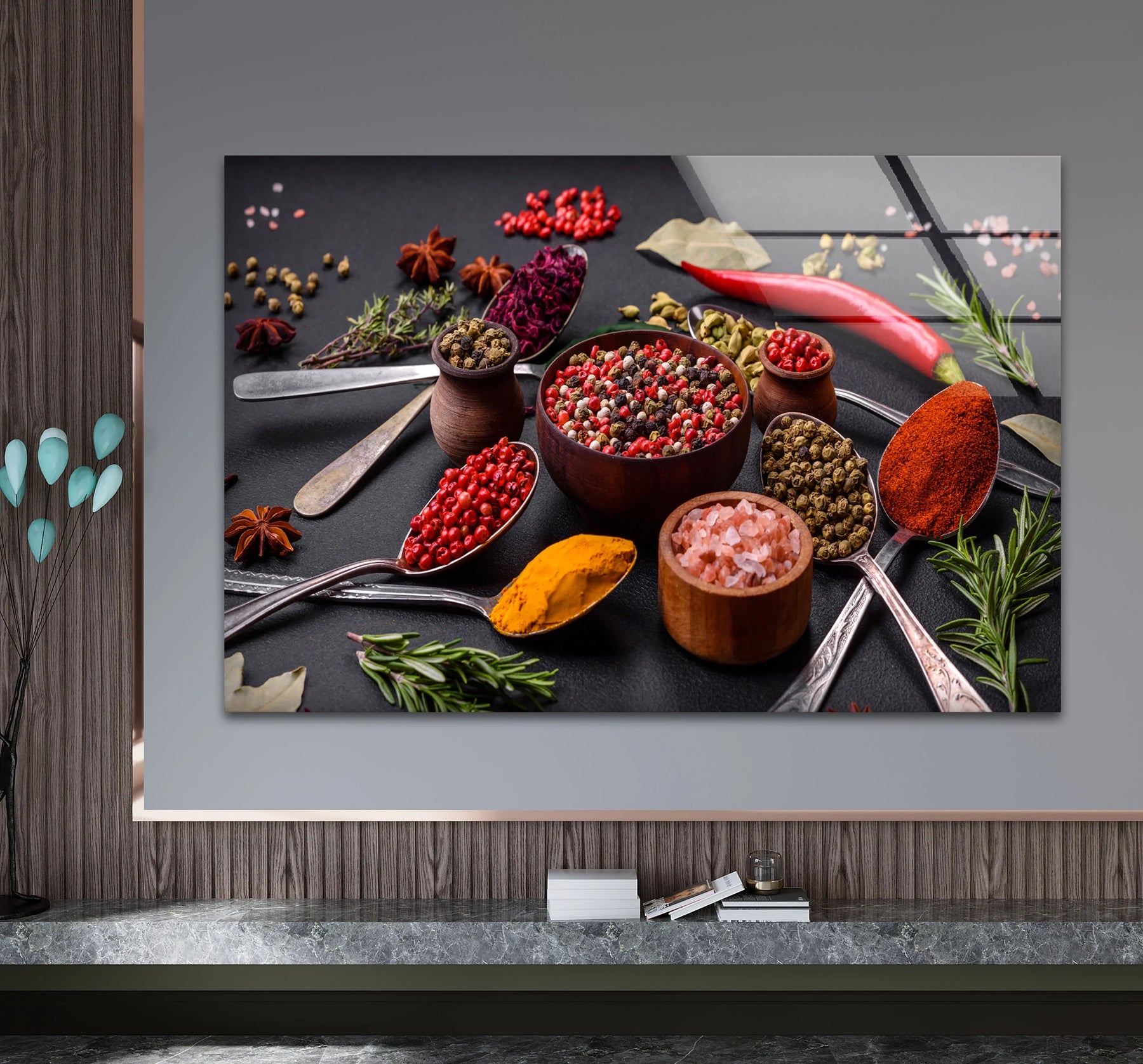 Farbenfrohe Gewürzwandbilder – Glasdruck mit Gourmet-Kräutern und -Gewürzen