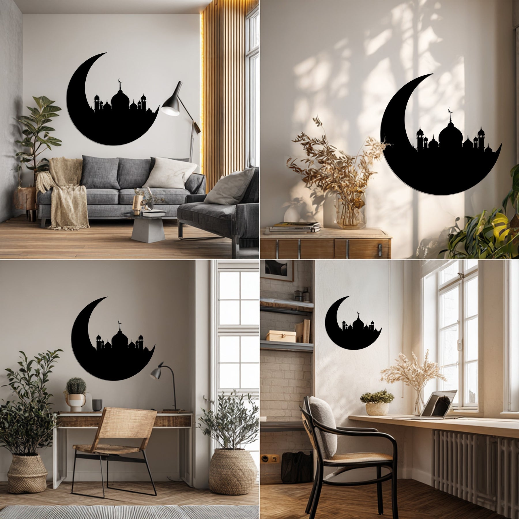 Genieße Ruhe und Ausgeglichenheit mit dem Mondblüte Metall WandbilderDieses atemberaubende Design vereint die Eleganz einer Mondsichel mit der Reinheit einer blühenden Lotusblume, erleuchtet von den Himmelsphasen und einem Leitstern – ein kraftvolles Symbol für Erleuchtung, Erneuerung und inneren Frieden.