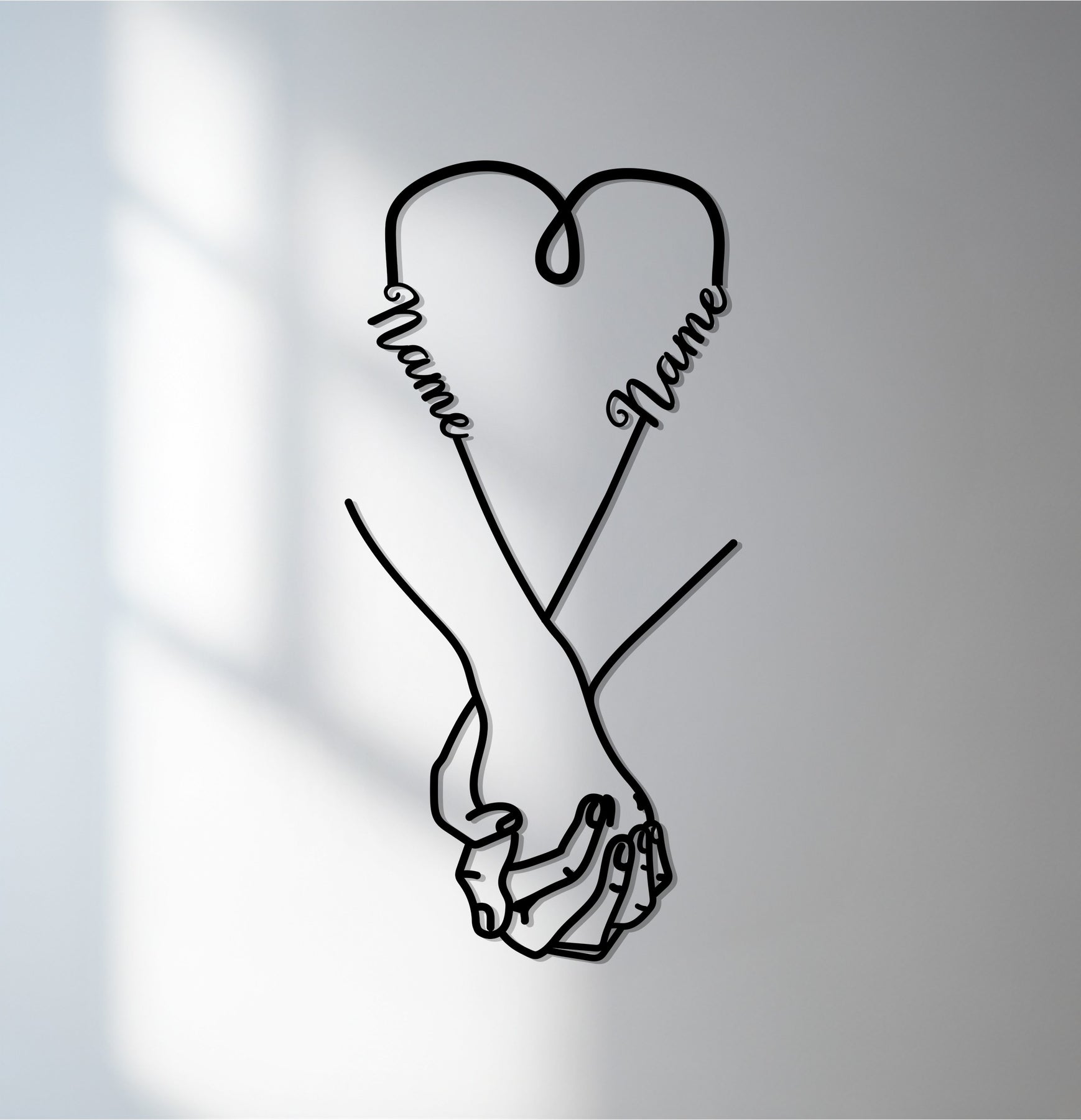 Custom Holding Hands Heart Metal Wall Art – Personalized Names