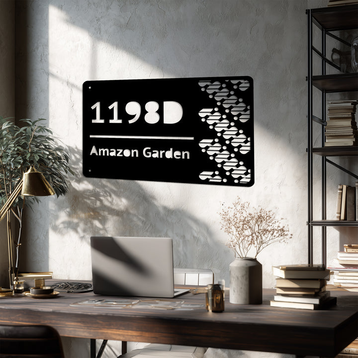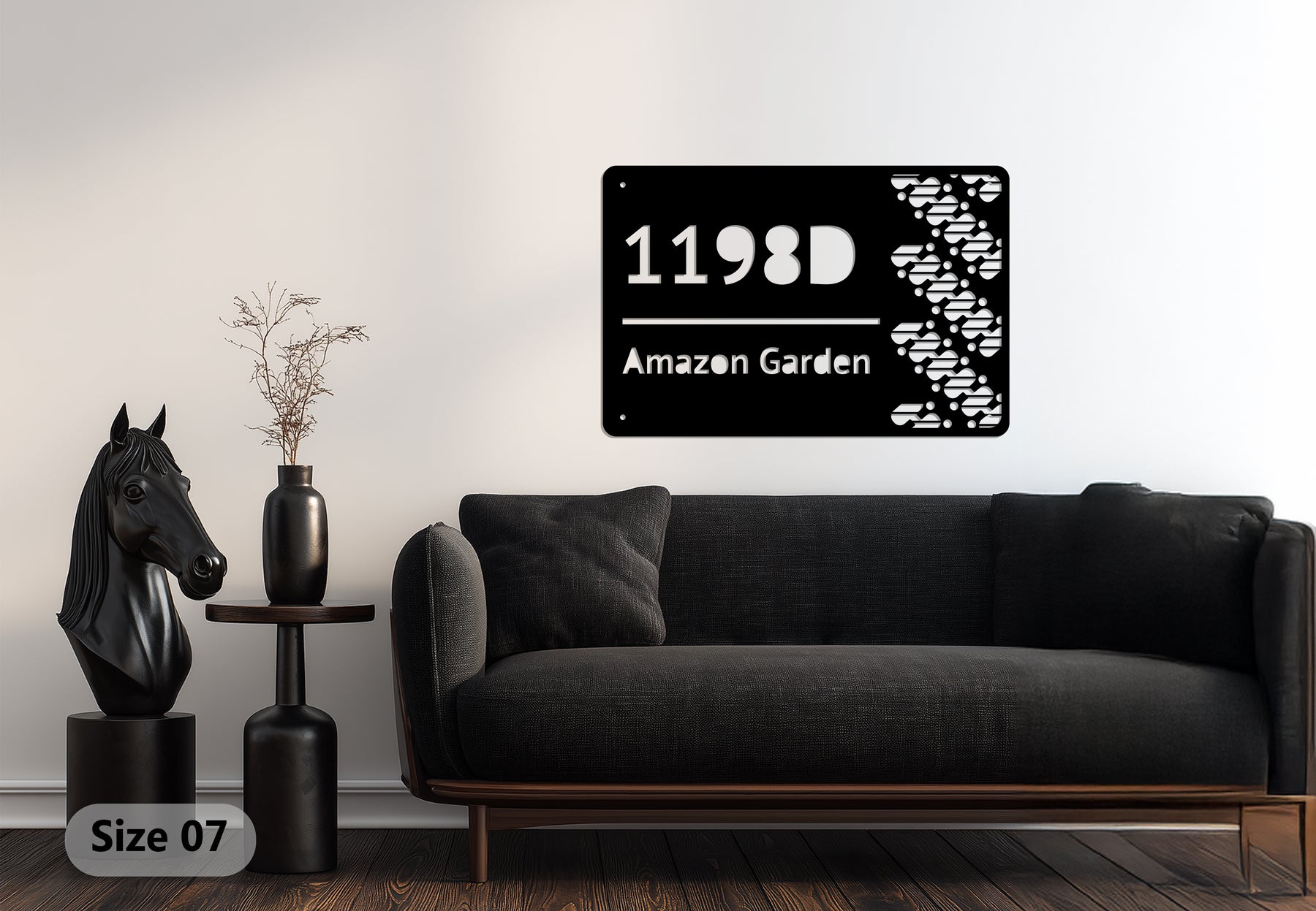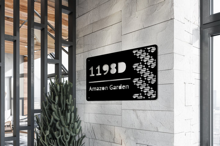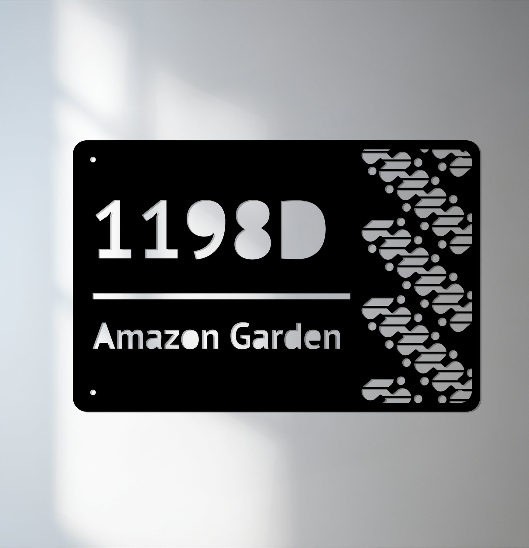 Custom Metal Address Plaque – Modern House Number Sign with Decorative Pattern