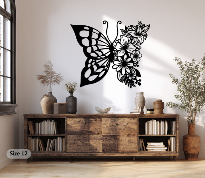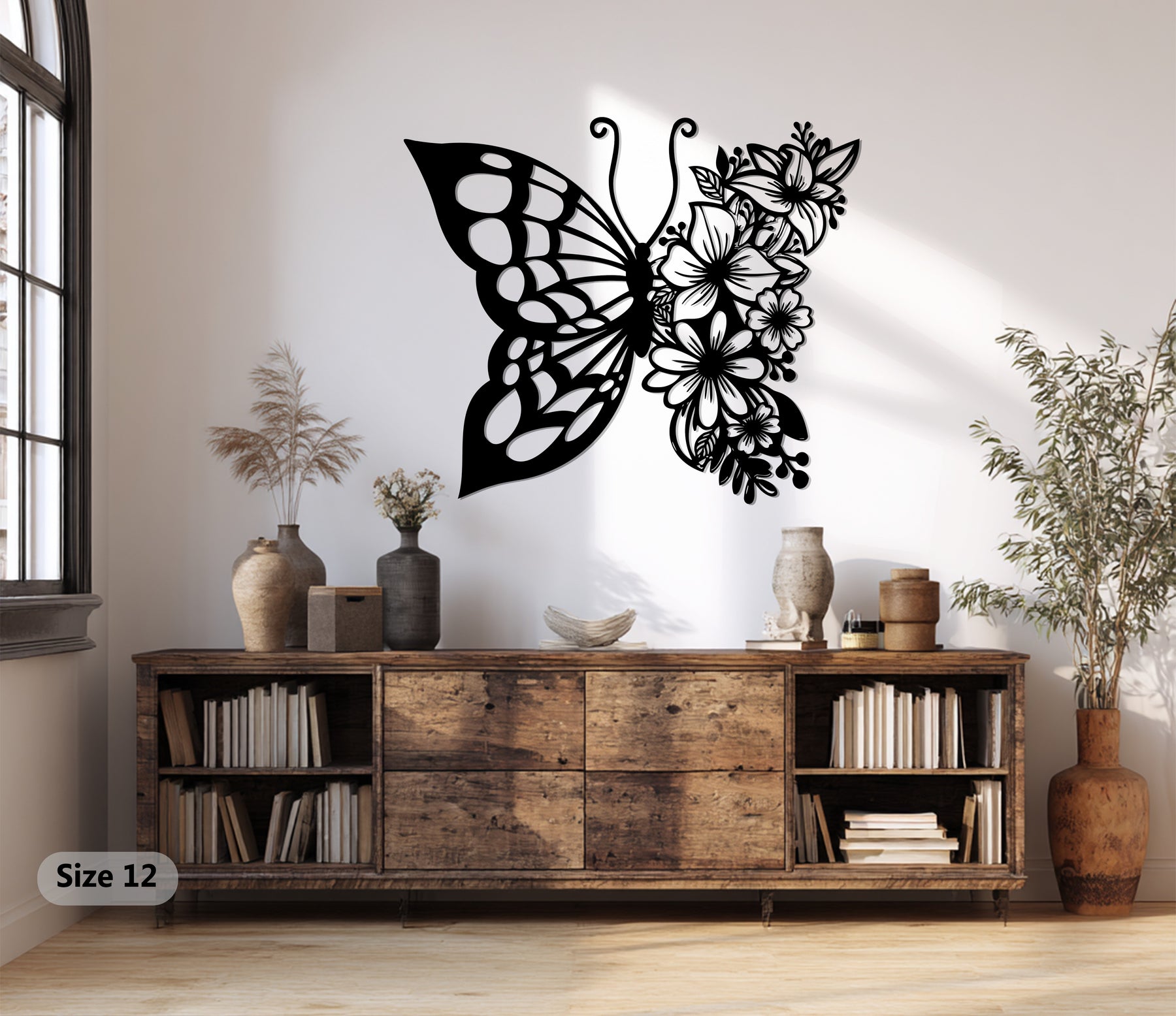 The intricate cutouts showcase masterful detailing—half butterfly, half blooming garden—creating a stunning fusion of life and movement. Its red finish adds vibrancy and sophistication, making it a centerpiece that brightens your walls with artistic flair.