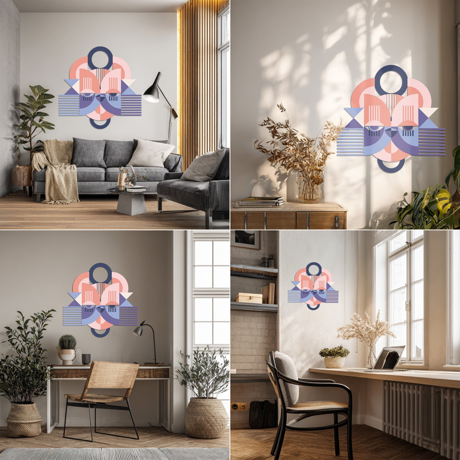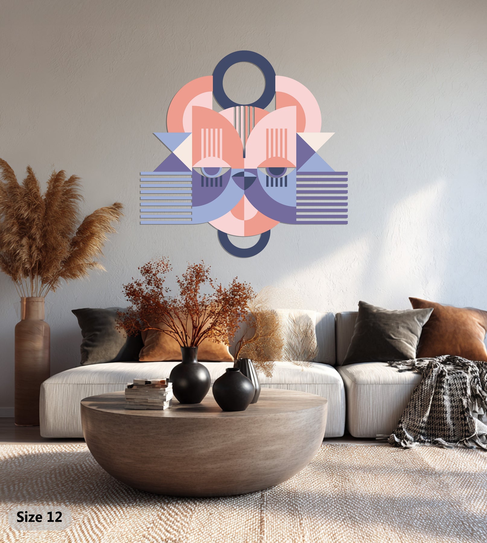 Add artistic sophistication to your decor with the Geometric Cat Face Metal Wall Art, a stunning fusion of modern abstraction and animal-inspired design. Crafted with interlocking shapes in soft pink, blue, and lavender hues, this artwork transforms a simple feline form into a contemporary masterpiece full of balance and symmetry.