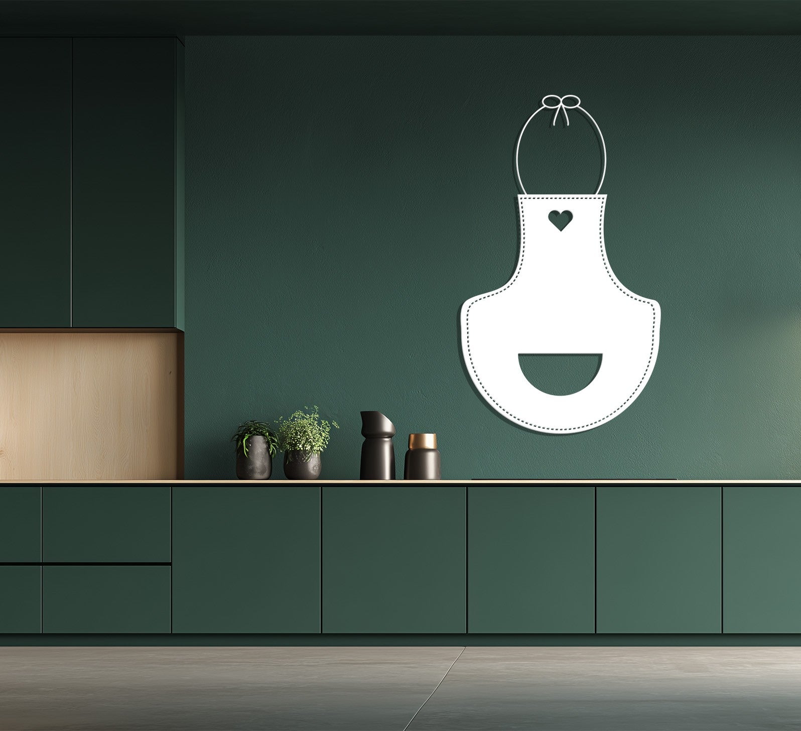 Add a touch of warmth and personality to your kitchen with the Heart Apron Metal Wall Art. Shaped like a classic apron with a delicate heart cutout, this piece captures the love and care that goes into every meal. The minimalist black metal design makes it a versatile décor piece — perfect for kitchens, cafés, or dining spaces.