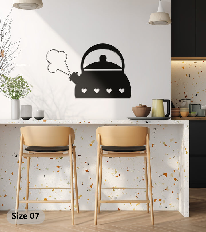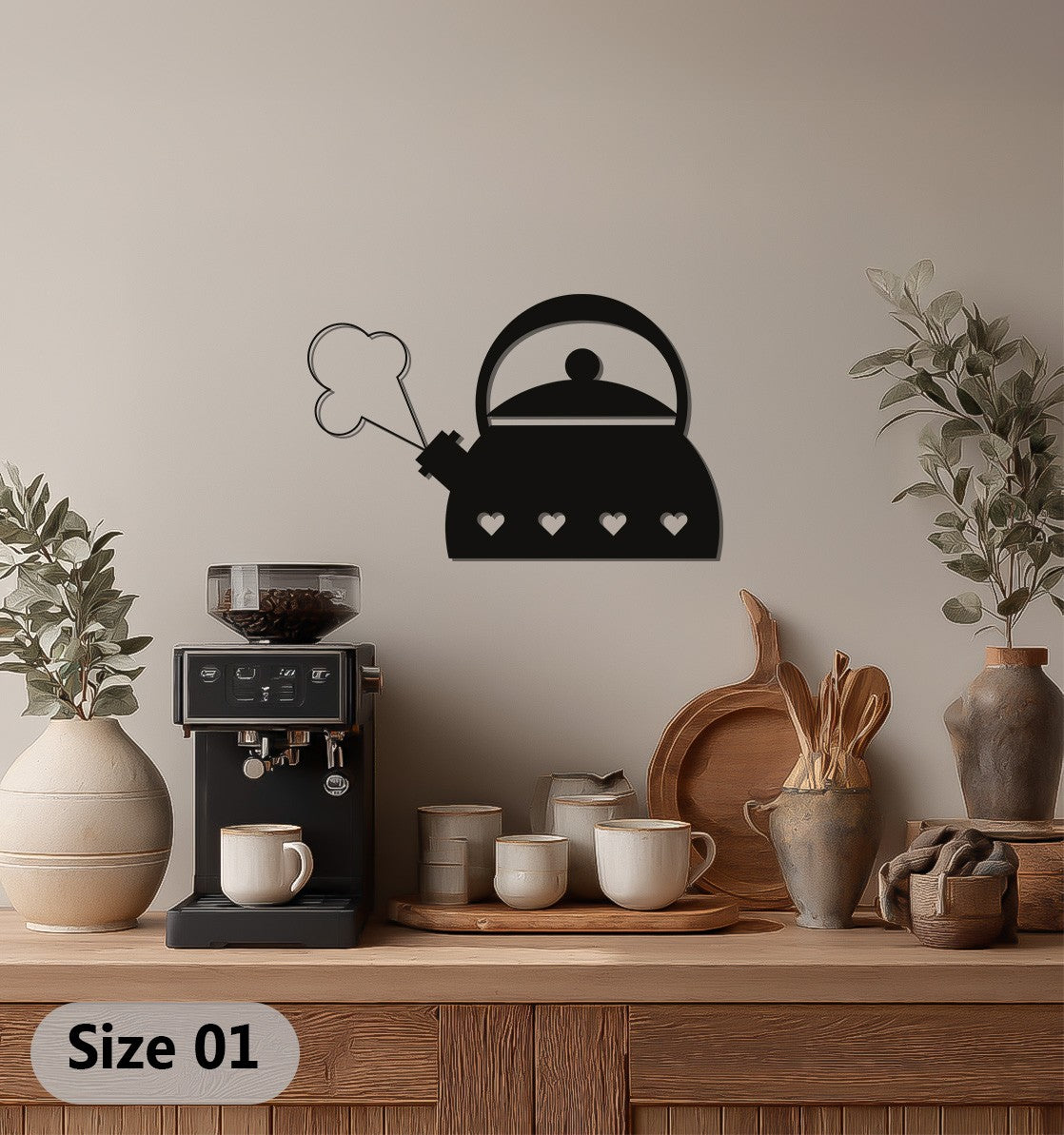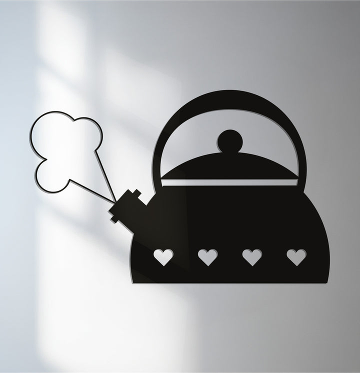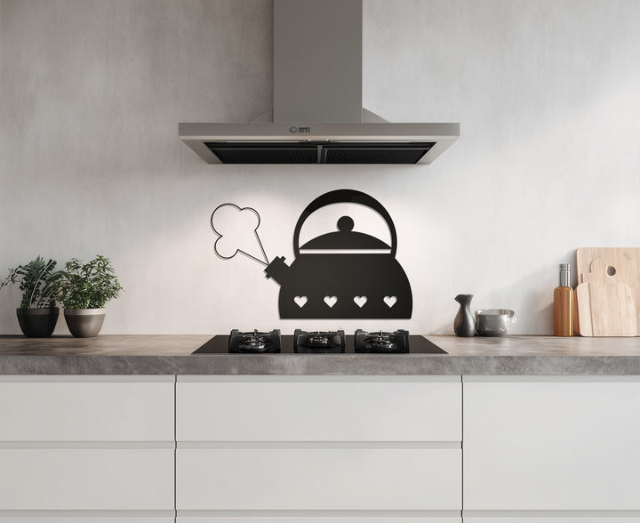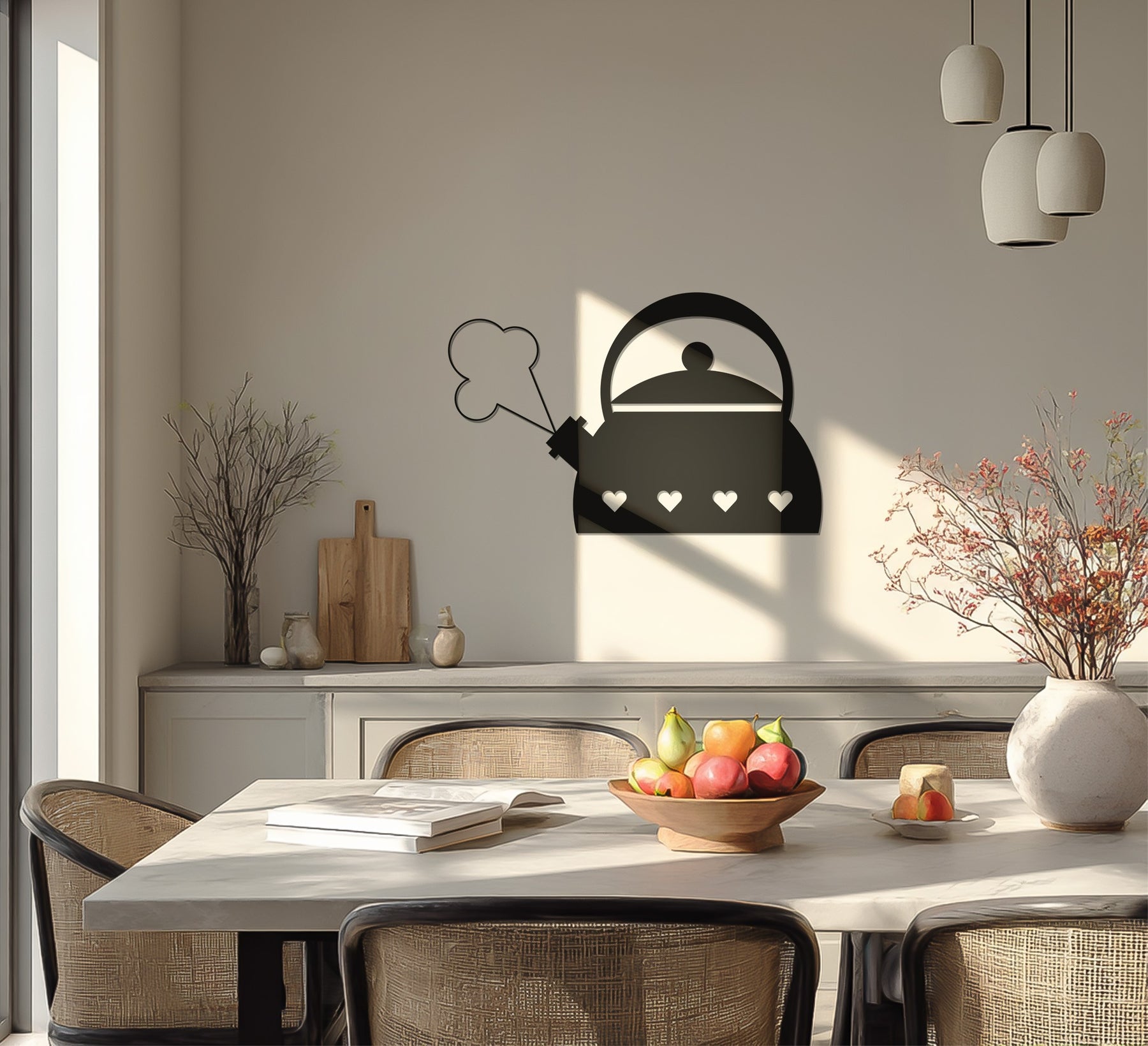Add a touch of warmth and charm to your kitchen with the Heart Kettle Silhouette Metal Wall Art. Designed in a clean black finish, this elegant piece features a steaming kettle adorned with little heart cutouts — a beautiful symbol of love, comfort, and home.