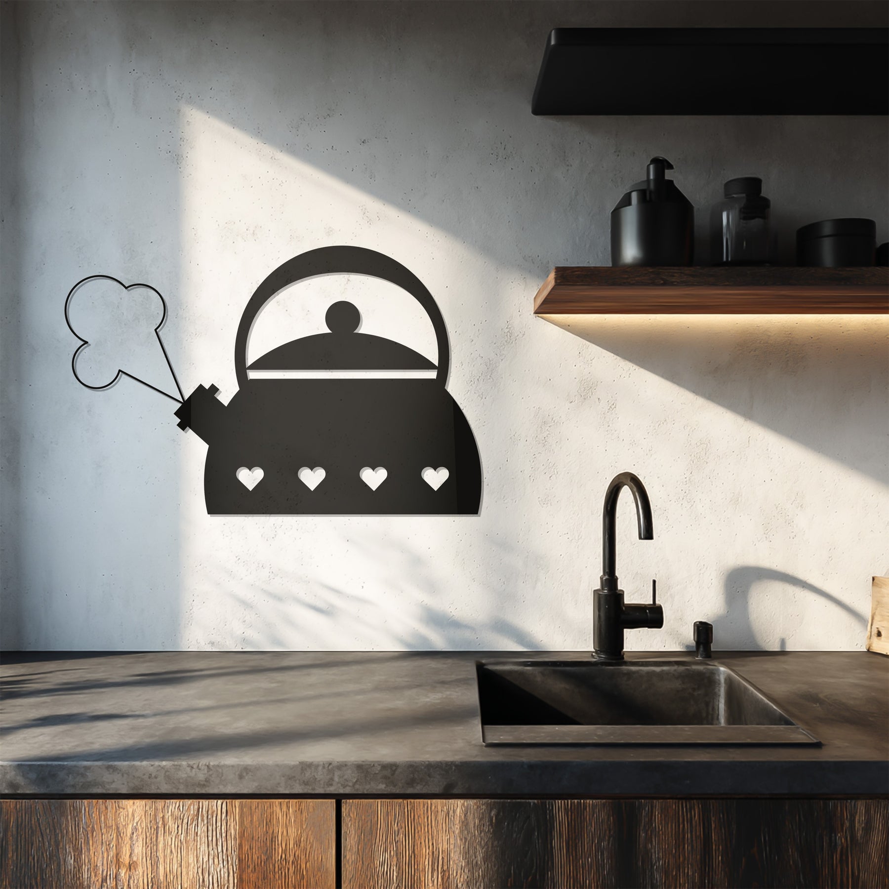 Heart Kettle Silhouette – Cozy Kitchen Metal Wall Art