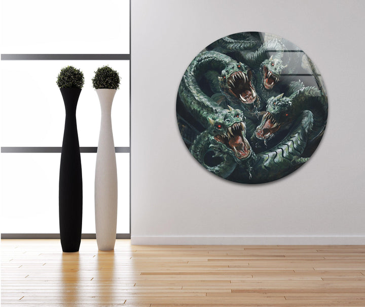 Entfesseln Sie mit dieser beeindruckenden Hydra mythische Wut in Ihrem Raum Filmplakate inspiriert Glasbilder. Dieses Stück zeigt die furchterregende Hydra in dramatischen Details, jeden Kopf stehend und brüllend, und fängt die rohe Kraft und urtümliche Bedrohung der legendären Kreatur ein. Hergestellt im lebendigen 8K-UV-Druck, bietet es intensive Farben und lebensechte Texturen – perfekt für Fantasy-Liebhaber und alle, die mutige Deko-Statements mögen.