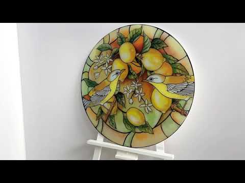 Holen Sie sich die Schönheit der Natur in Ihr Zuhause mit diesem Glasbilder Mit einem bezaubernden Zitronenbaum- und Vogel-Design. Die leuchtenden Gelbtöne der Vögel und Zitronen werden durch aufwendige Buntglasdetails perfekt ergänzt und schaffen eine warme und einladende Atmosphäre.