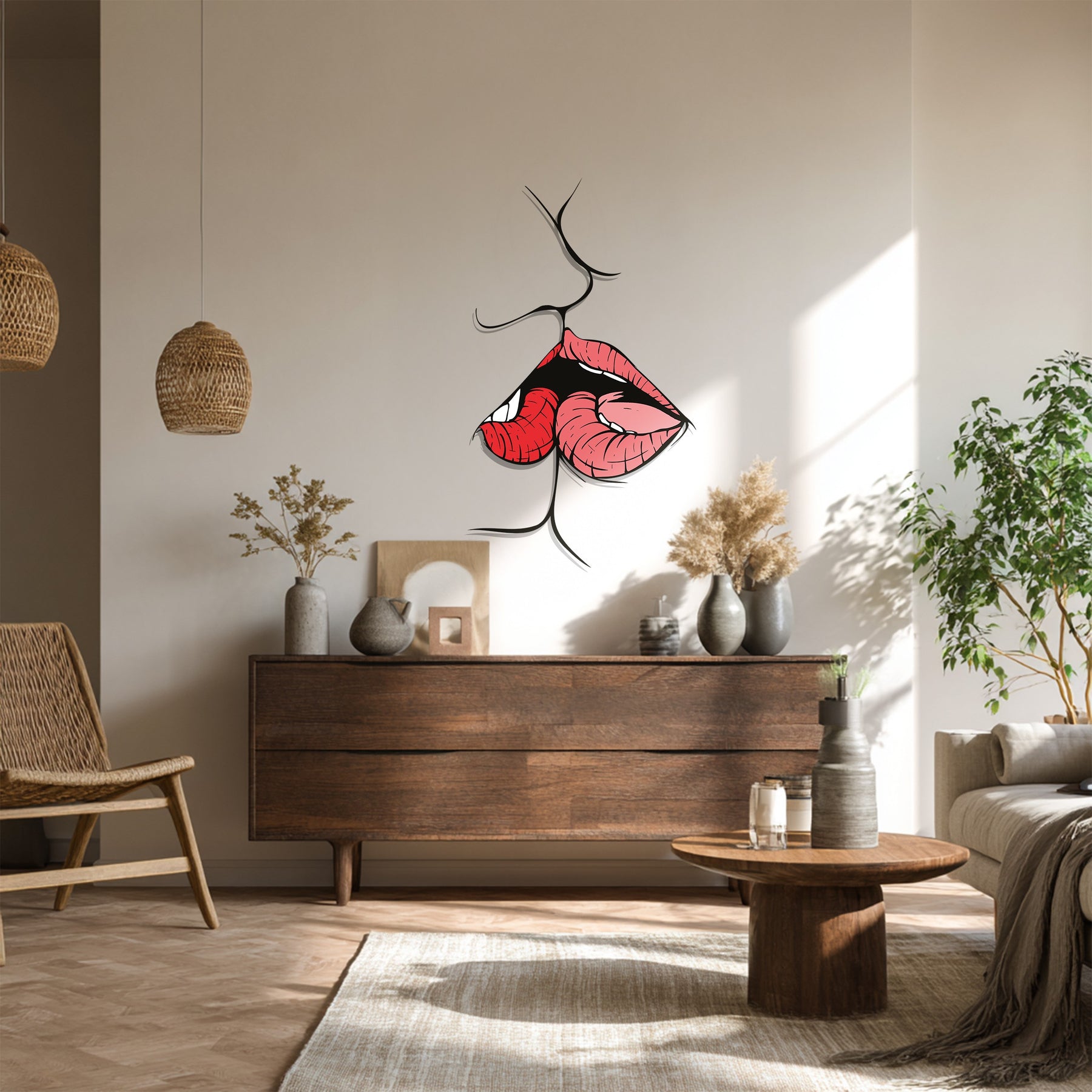 Lips Kiss Metal Wall Art – Sensual Modern Romantic Home Decor