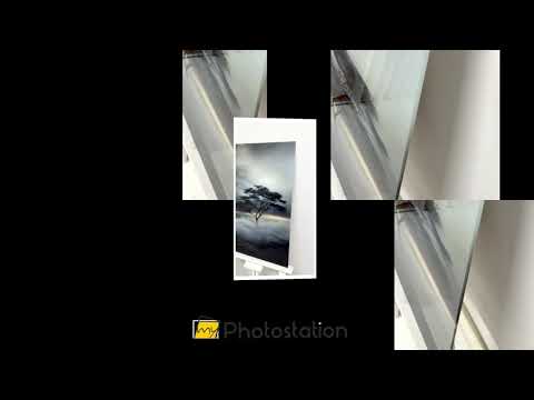 Modern black and white paintings blending the peaceful imagery of a solitary tree with artistic creativity.
