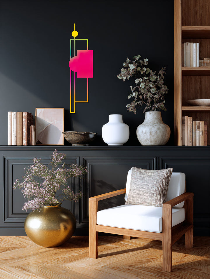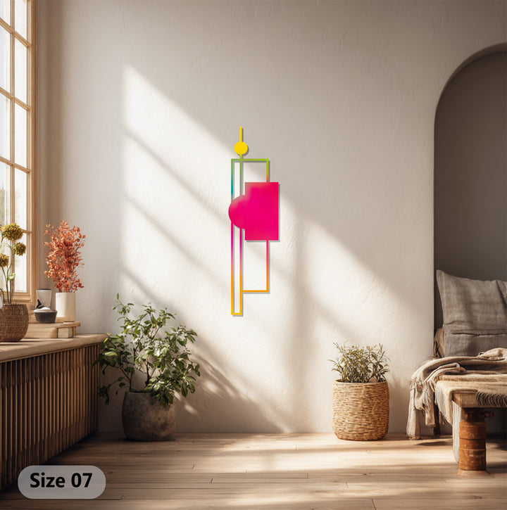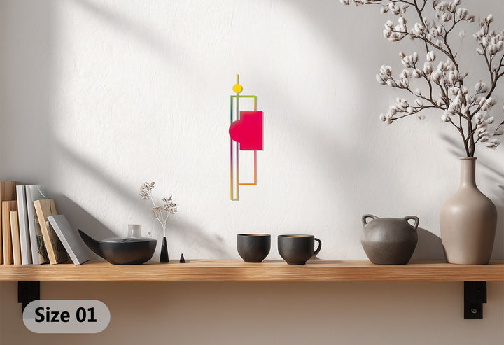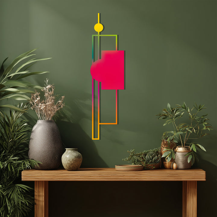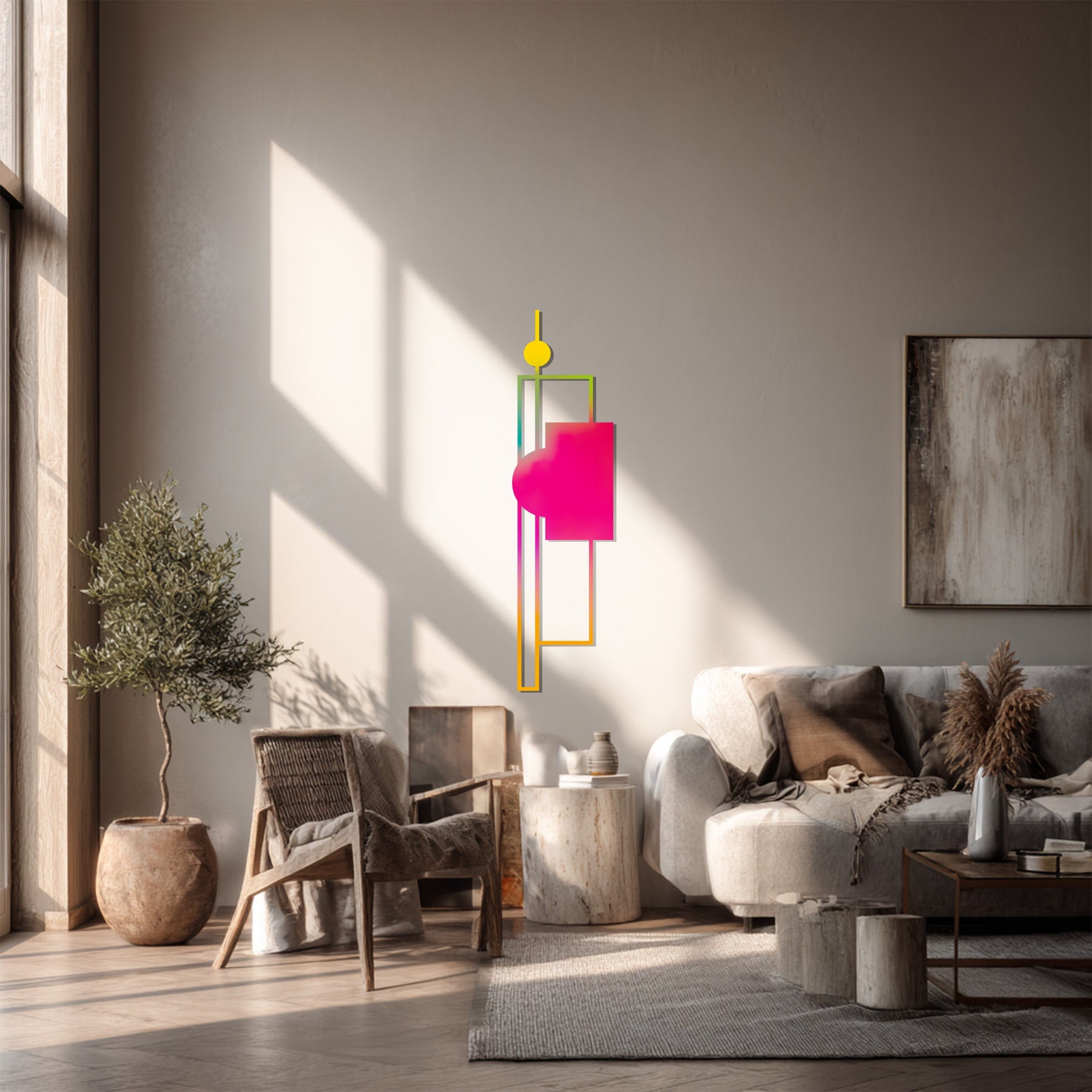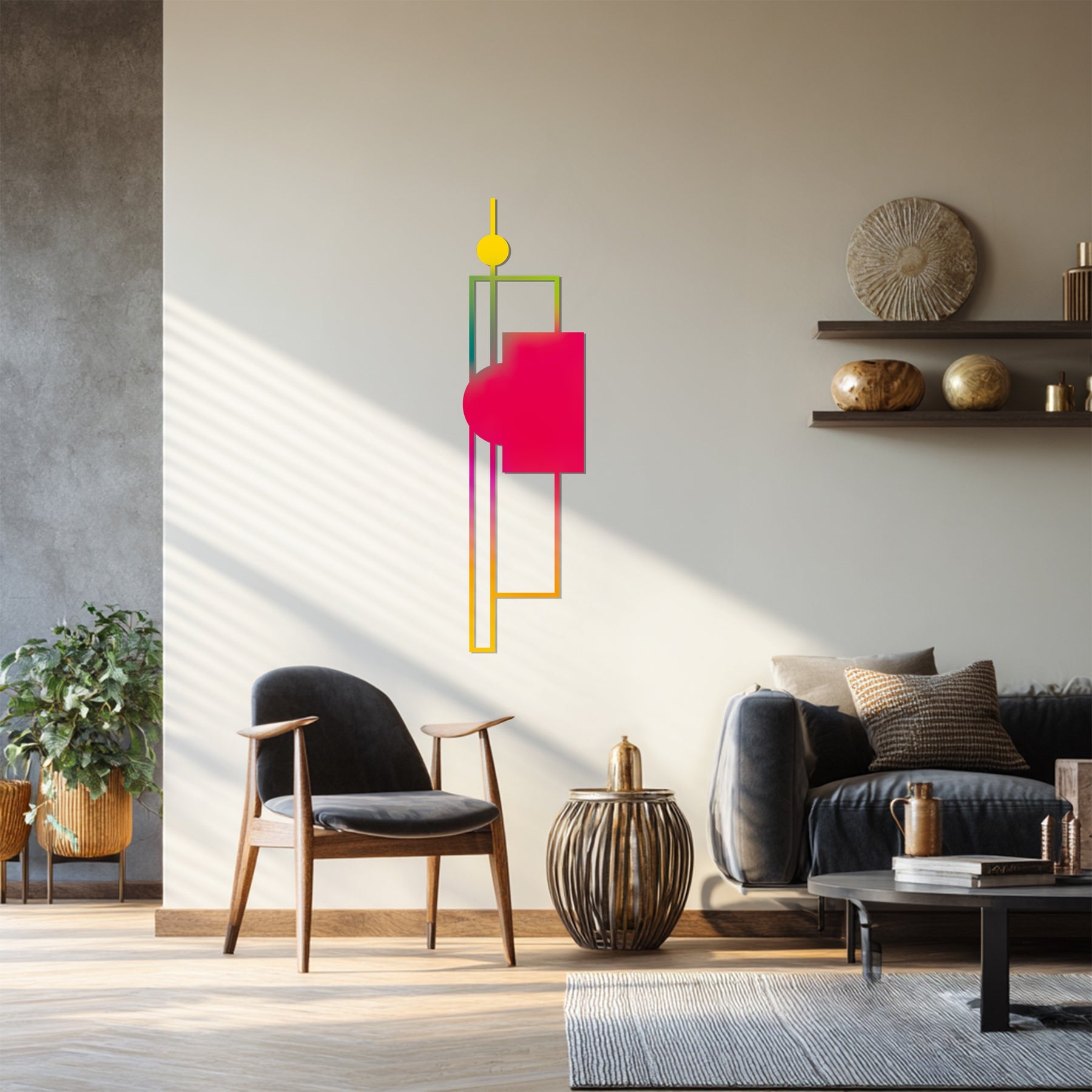 Add a touch of elegance and balance to your interior with the Minimal Geometric Line Metal Wall Art, a sleek representation of modern abstract design and spatial harmony. Featuring a vibrant blend of yellow, pink, and gradient tones, this composition plays with form and proportion to create a sophisticated visual statement — ideal for hallways, living rooms, or minimalist interiors.