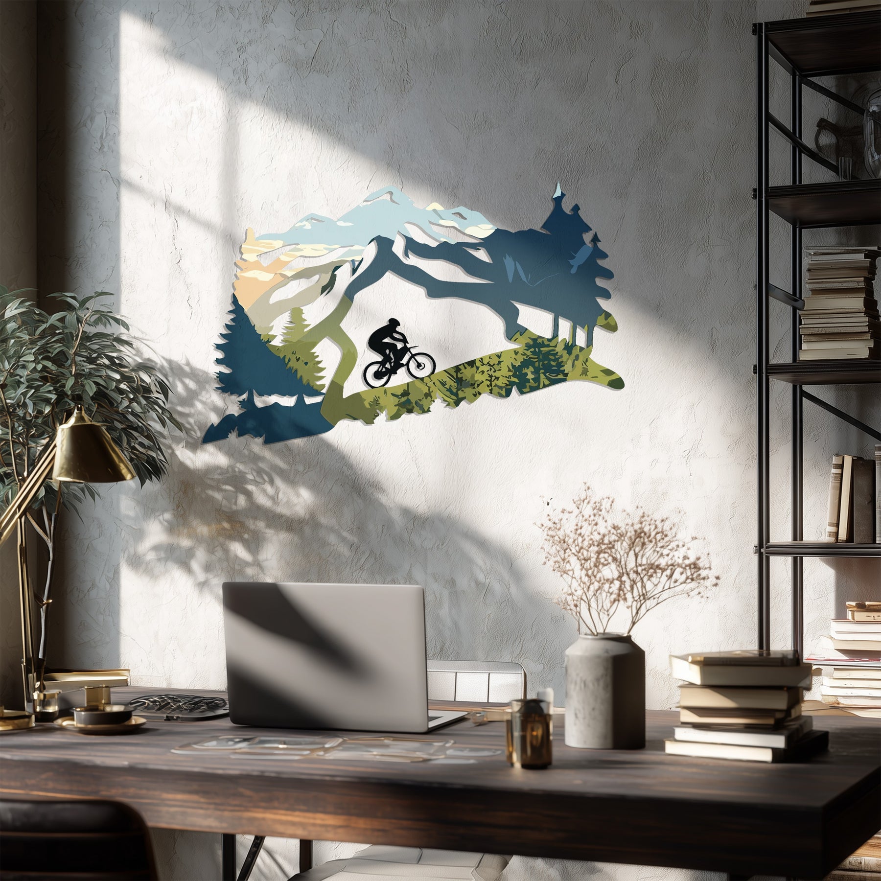 Crafted from premium-quality metal, this artwork embodies the spirit of adventure, making it an ideal decor piece for nature lovers, cyclists, and explorers. Perfect for living rooms, cabins, or offices that crave a touch of wilderness.