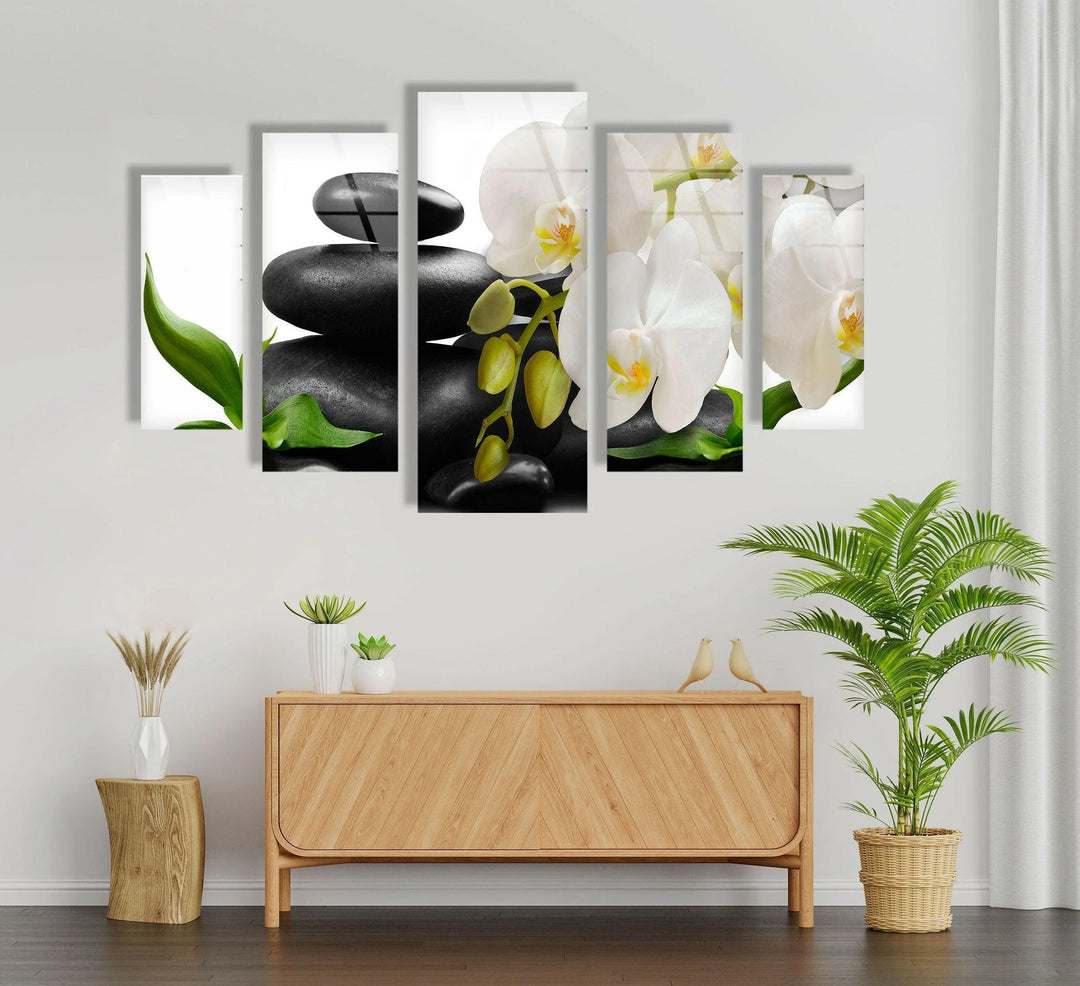 Orchideenblüten & Steine Glasbilder – 5 Stück