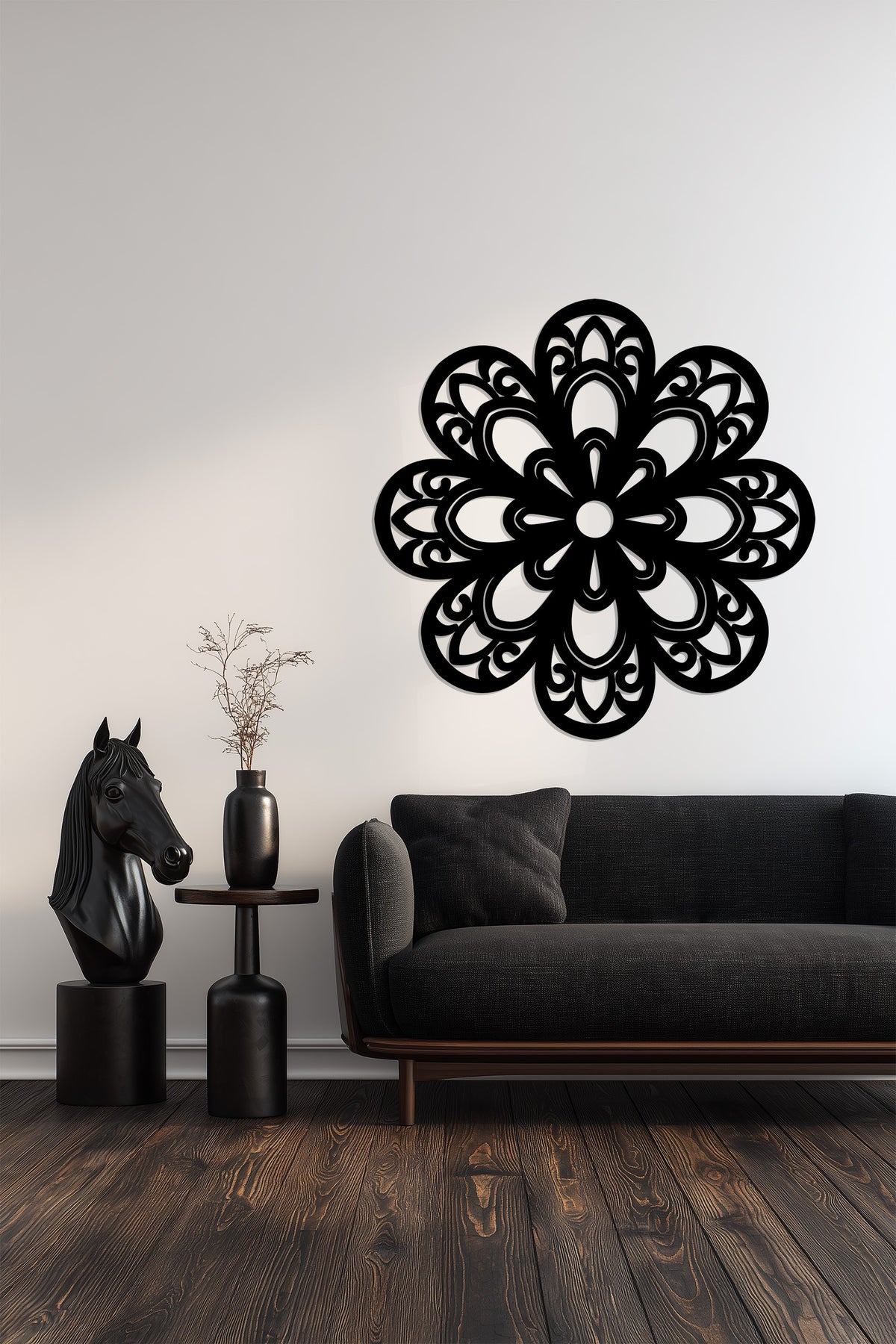 Black mandala metal wall art