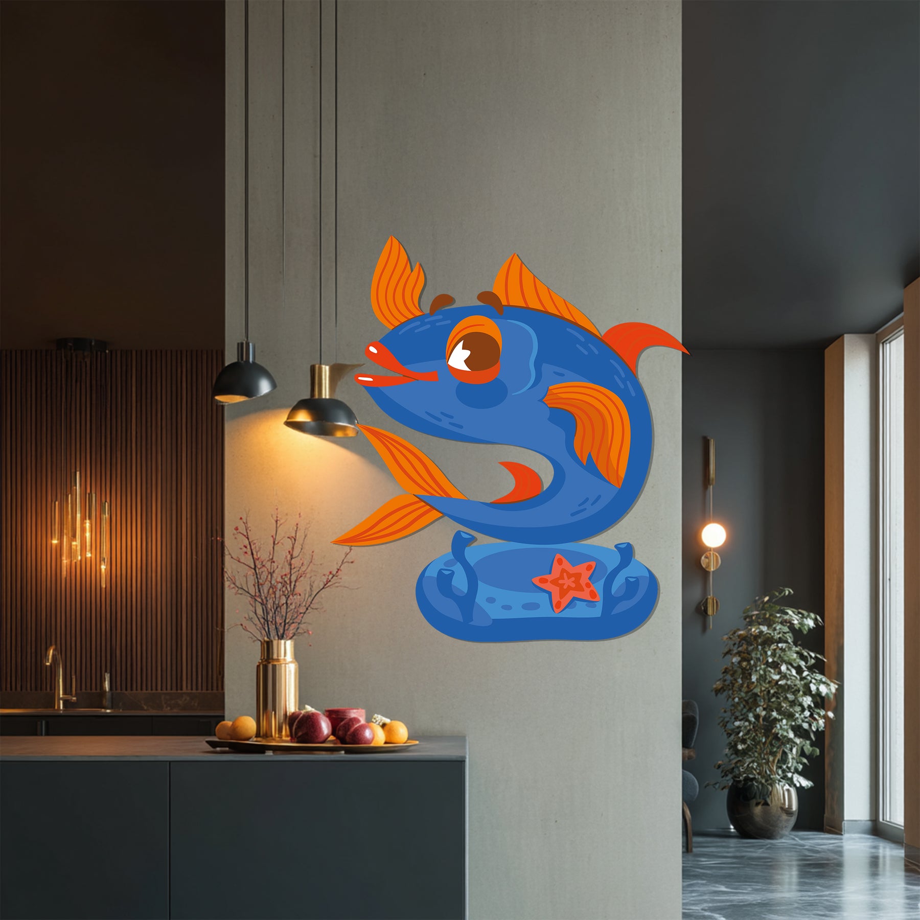 Playful Blue Fish Metal Wall Art – Vibrant Ocean-Inspired Home Decor