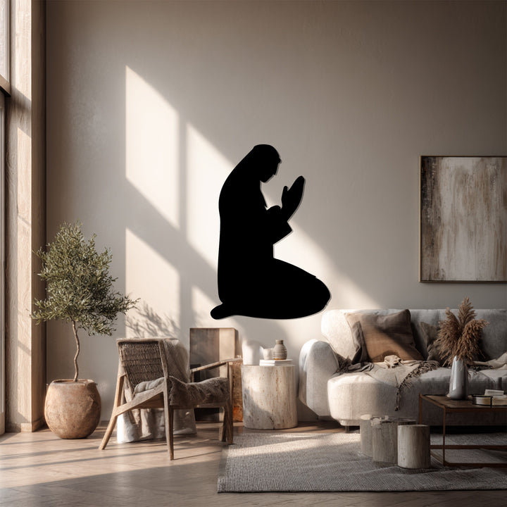Kneeling prayer metal wall art black