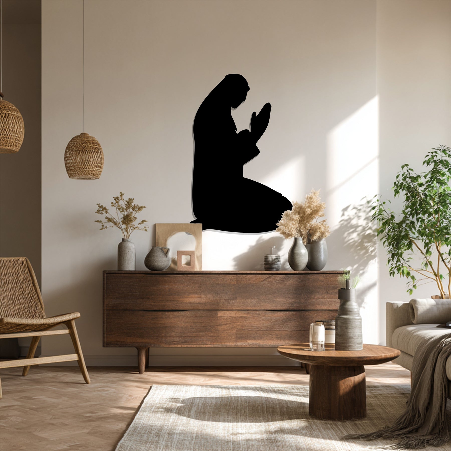 Minimal Islamic prayer silhouette wall art