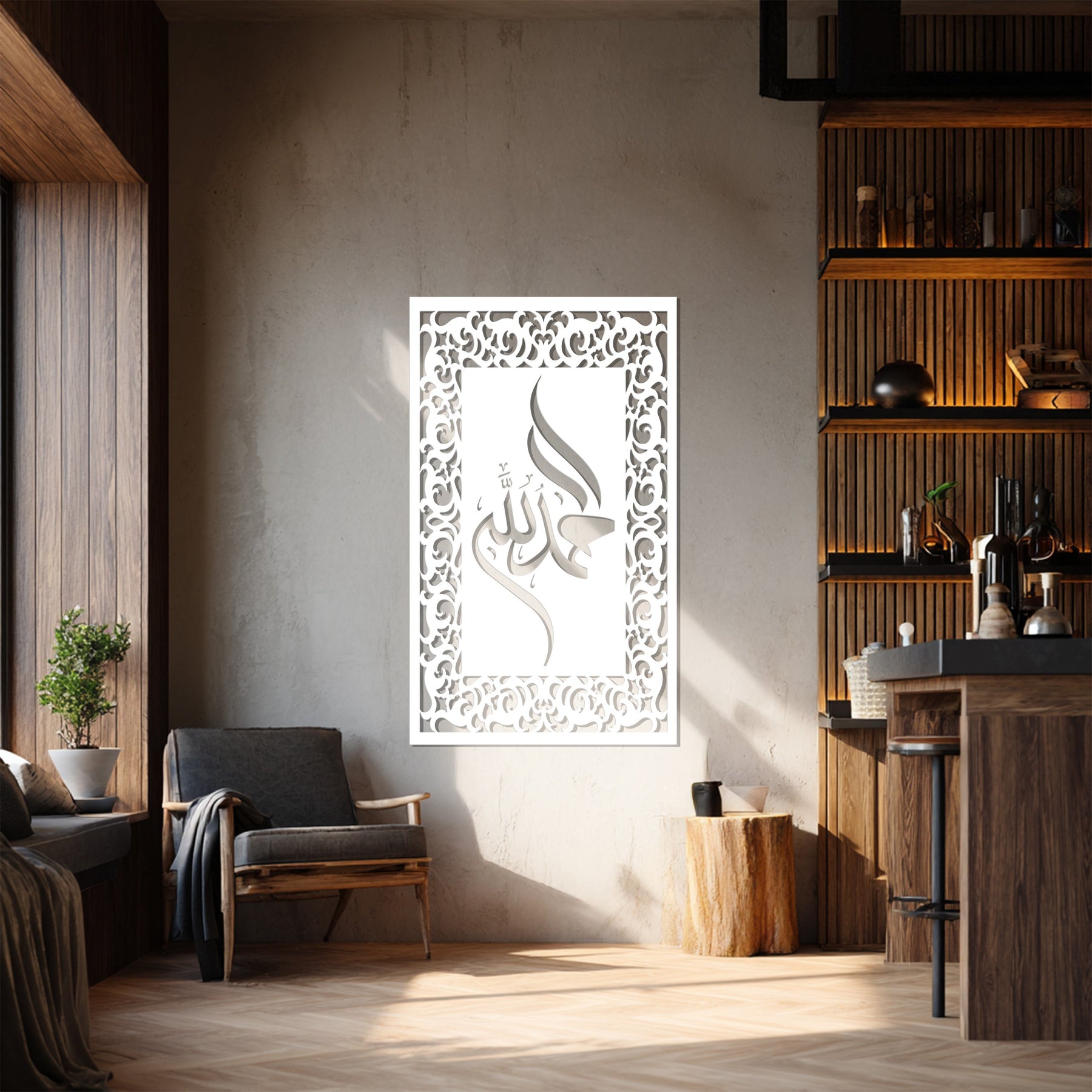 Verleihen Sie Ihrem Zuhause mit dem Göttliche Symmetrie – Ornamentale Geometrie Metall WandbilderDieses vertikale Meisterwerk zeichnet sich durch eine kunstvolle Anordnung fließender Kurven und symmetrischer Motive aus, die Harmonie und zeitlose Eleganz symbolisieren.