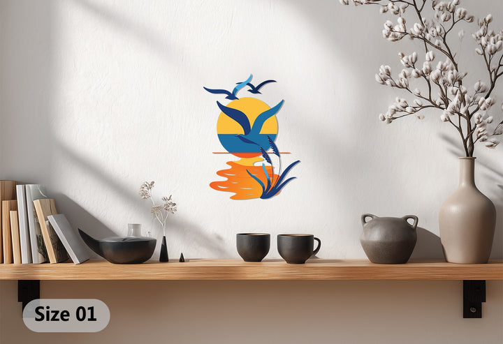 Made with premium laser-cut metal, this piece combines deep blues, golden yellows, and orange hues that radiate serenity and movement. Perfect for beach lovers and modern interiors alike, it adds a harmonious balance of color and emotion to any room — ideal for living rooms, hallways, or bedrooms seeking a calming, coastal feel.