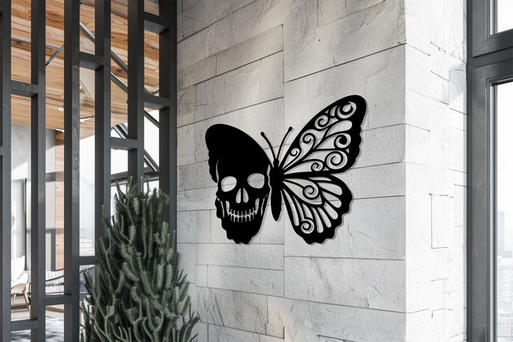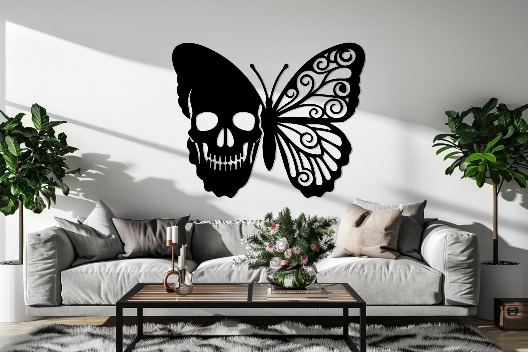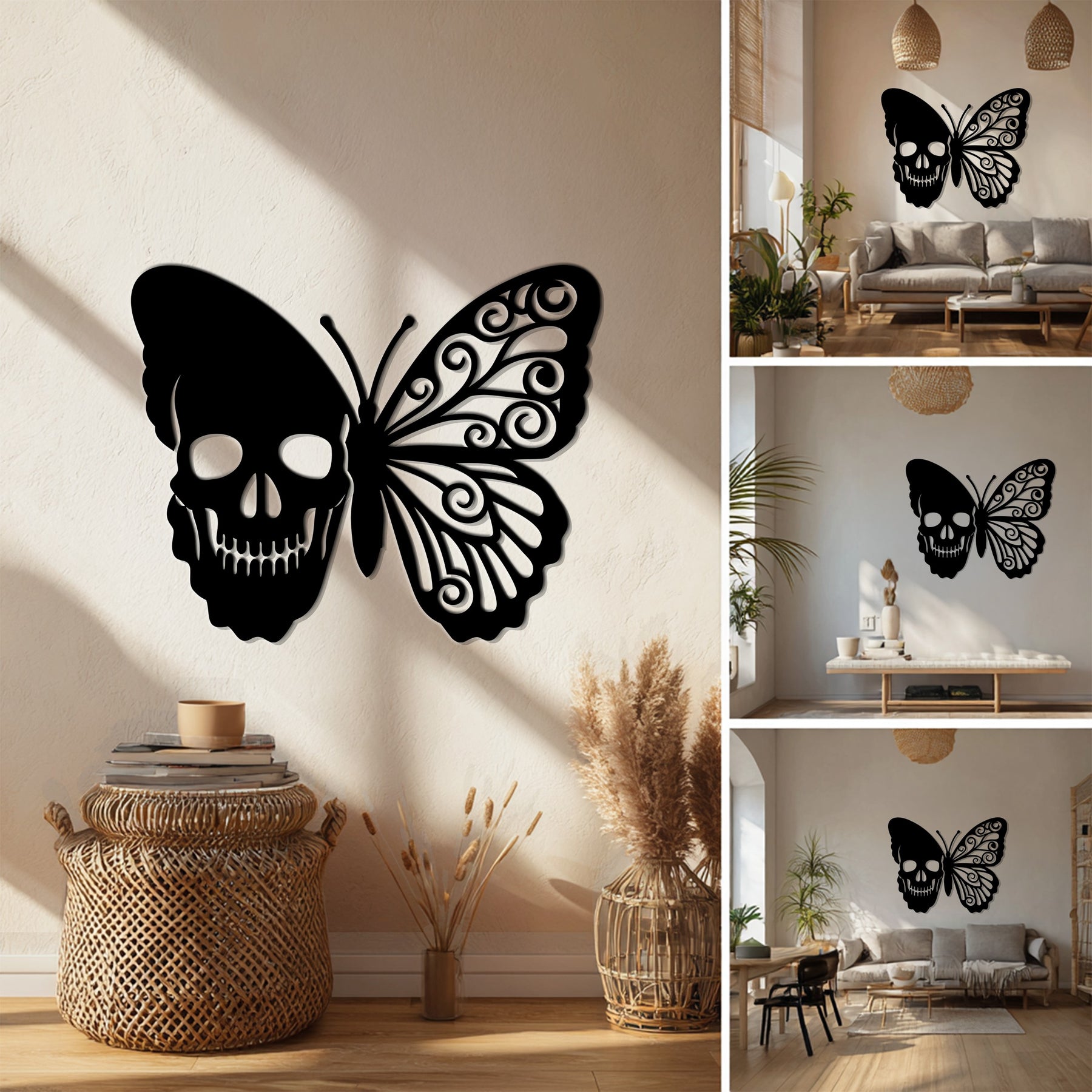 Skull Butterfly Metal Wall Art – Gothic Elegance in Modern Design