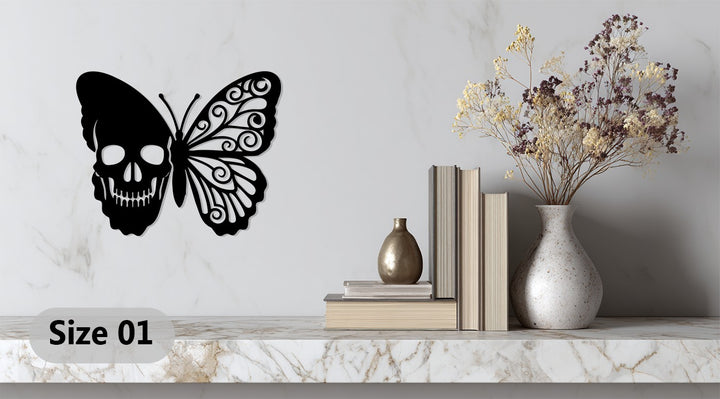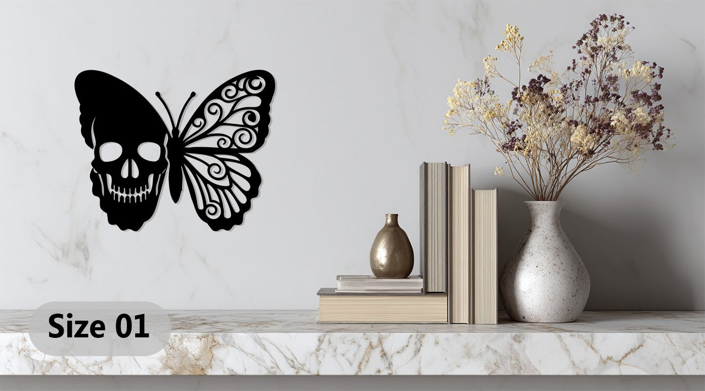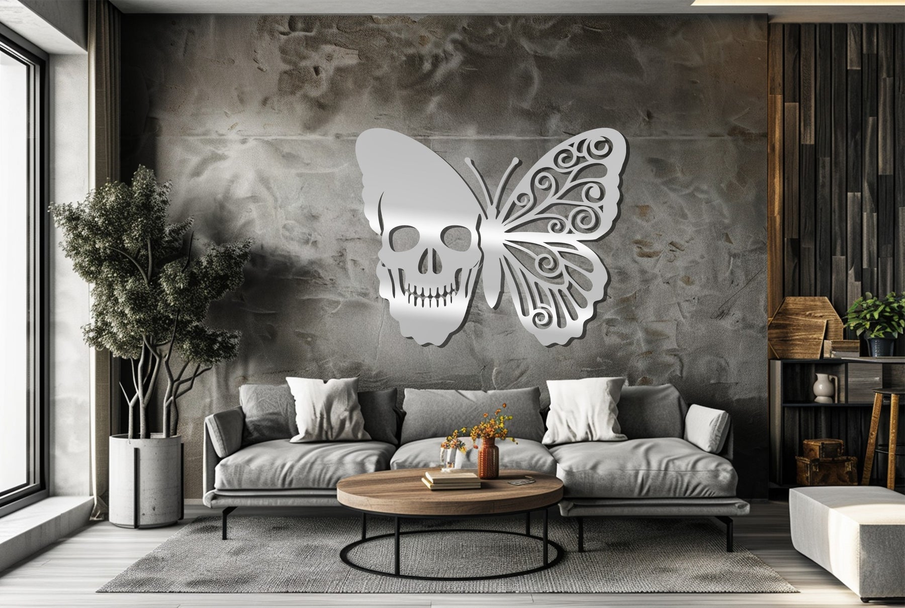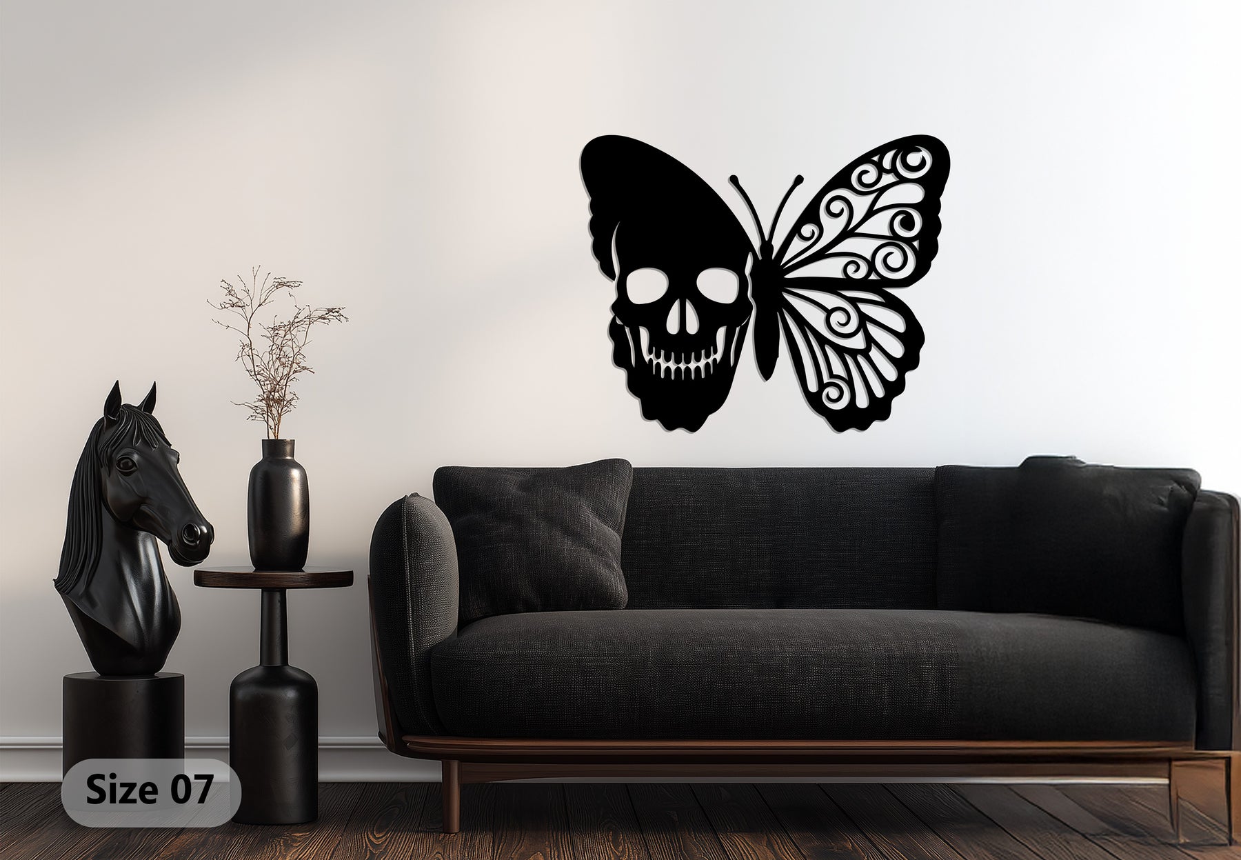 Skull Butterfly Metal Wall Art – Gothic Elegance in Modern Design