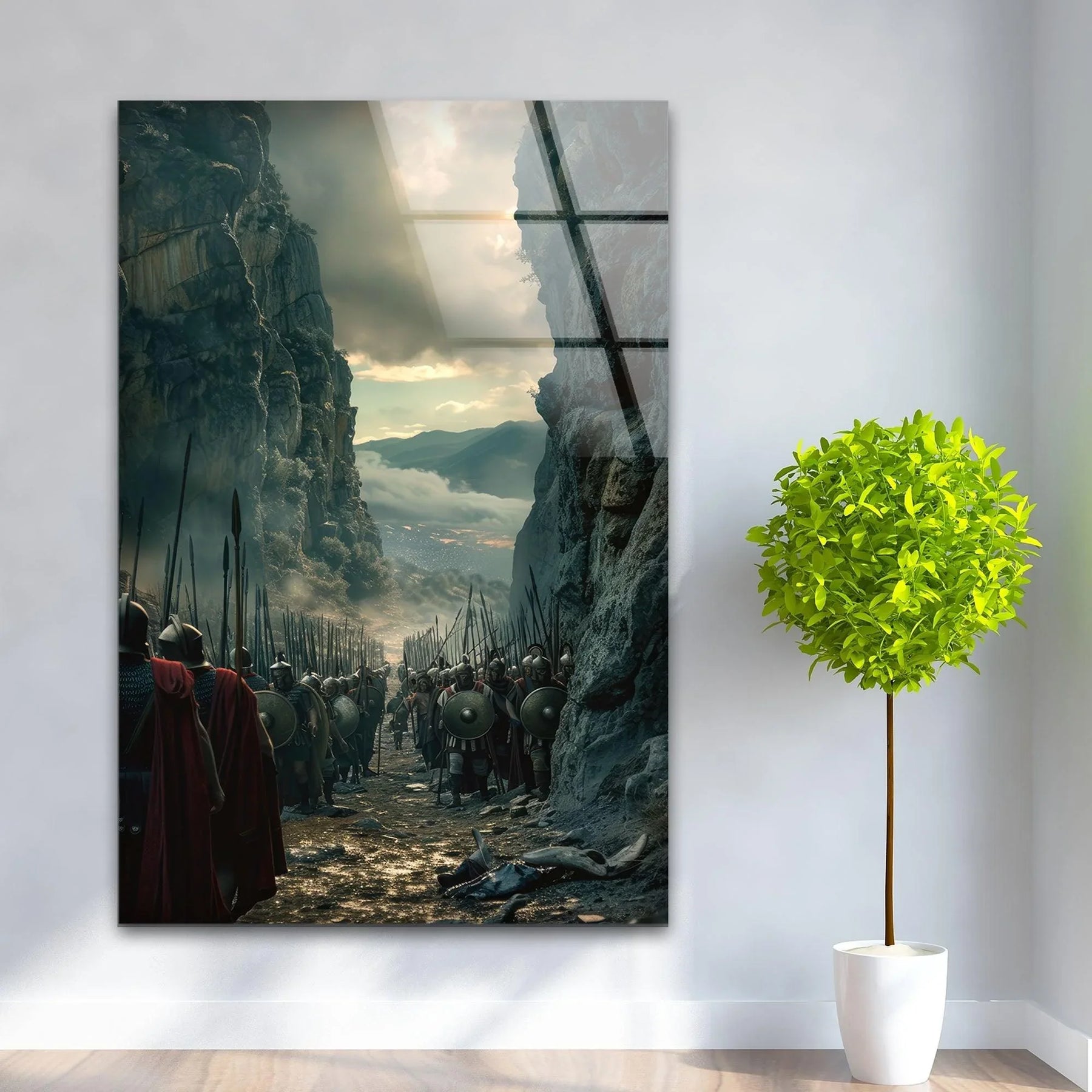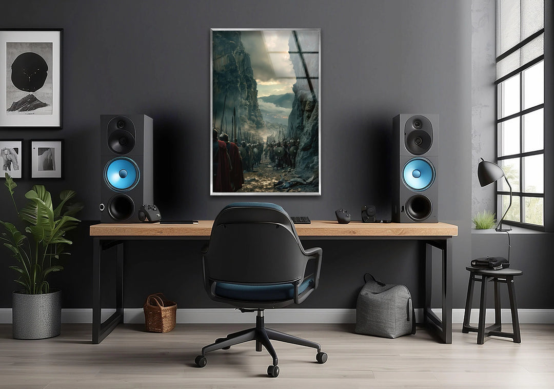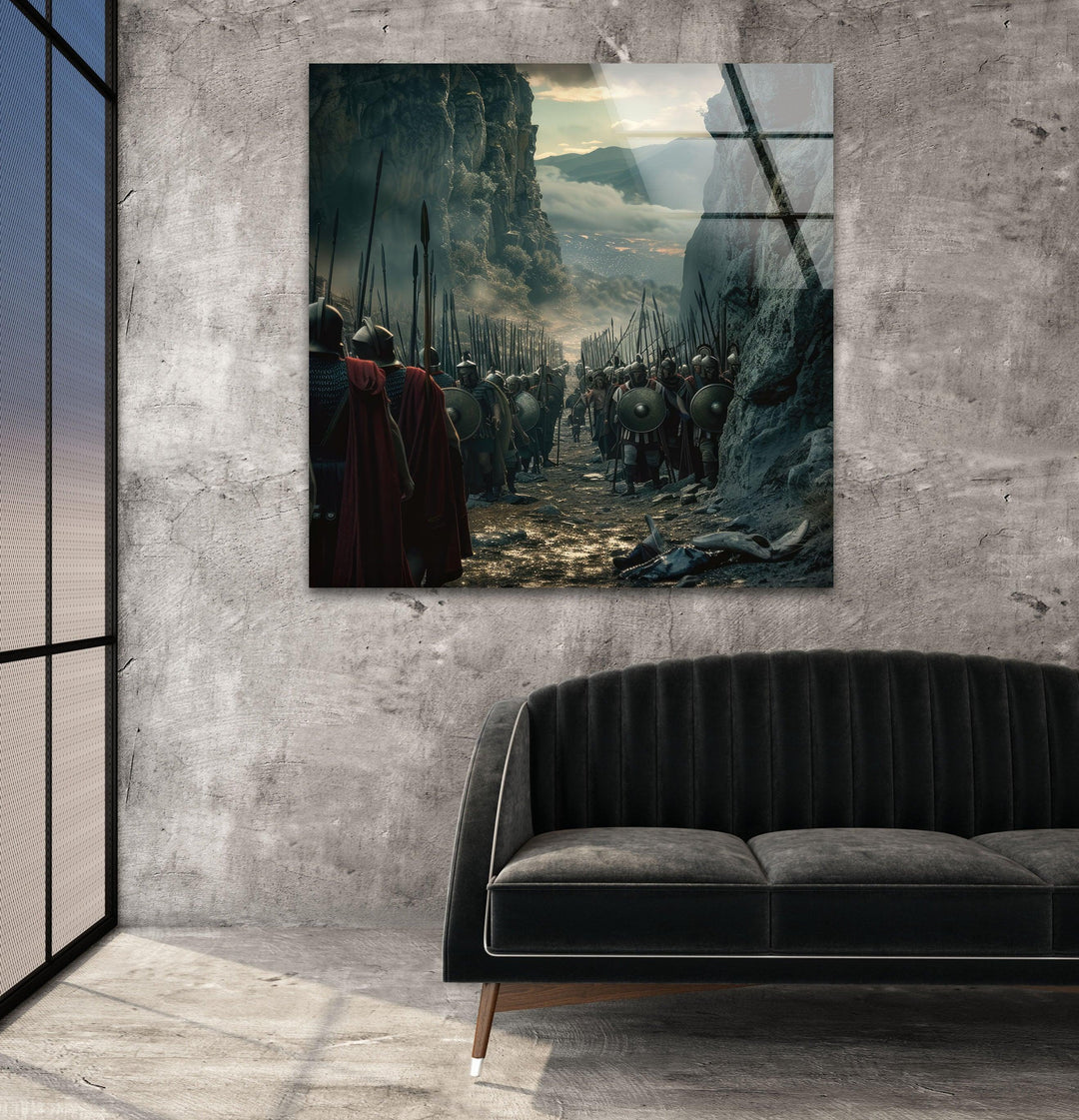 Umarmen Sie den Geist der alten Tapferkeit mit diesem Glas Wandkunst inspiriert von den legendären Bildern von Spartacus beste KinoplakateDiese atemberaubende Szene zeigt eine Reihe furchtloser Krieger in einer engen Schlucht, die sich auf einen epischen Kampf vorbereiten. Sie zeugt von der Widerstandsfähigkeit und Stärke der Freiheitskämpfer. Perfekt für Geschichtsliebhaber und Liebhaber filmischer Großartigkeit: Dieses Werk bringt die Intensität und Dramatik antiker Schlachten direkt in Ihr Zuhause.