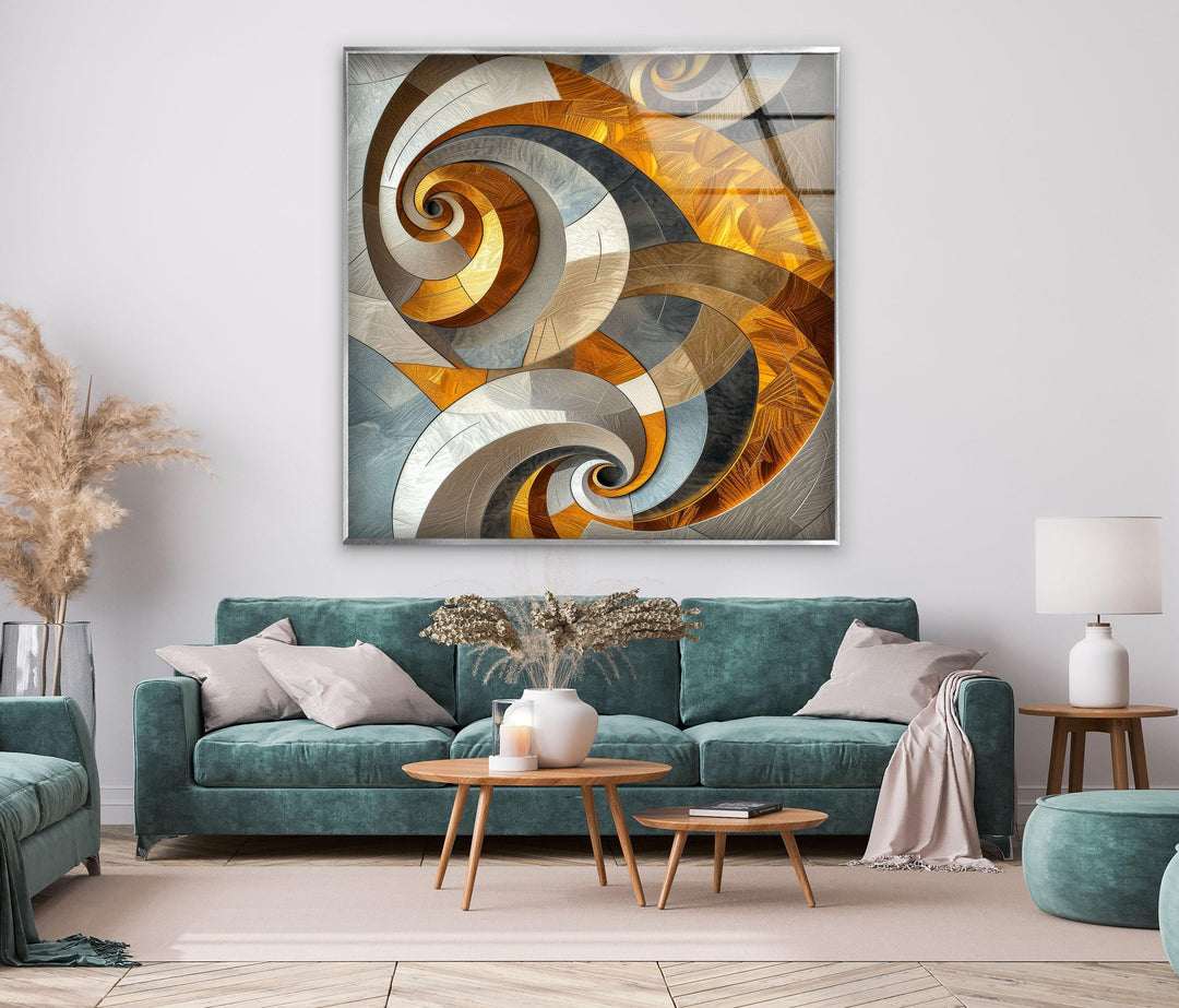 Verwandeln Sie Ihren Raum mit dem fesselnden Stained Fractal Design Glasmalerei Kunstwerk, ein Meisterwerk zeitgenössischer Eleganz. Dieses Glasbilder besticht durch faszinierende Spiralen in warmen Gold- und kühlen Tönen, die Ihren Wänden Tiefe und Bewegung verleihen. Das filigrane Design weckt ein Gefühl von Staunen und Raffinesse und macht es zur perfekten Ergänzung für jede moderne Wohn- oder Büroeinrichtung.