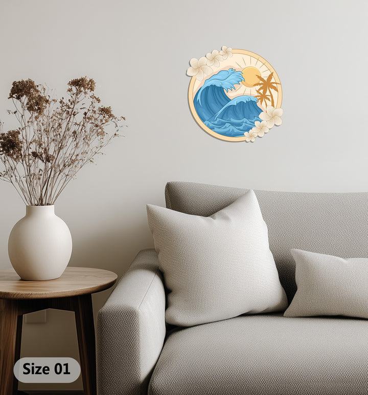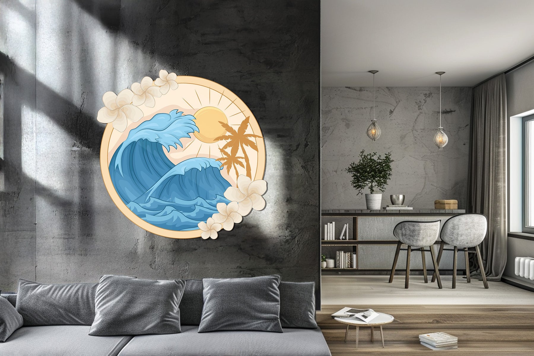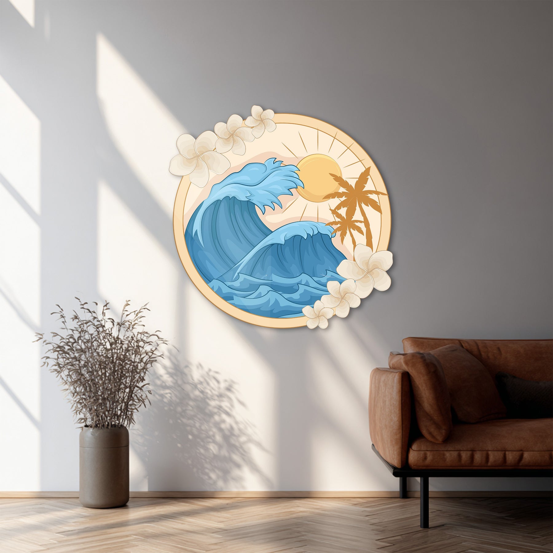 Tropical Wave Metal Wall Art – Coastal Ocean Sunset Home Decor