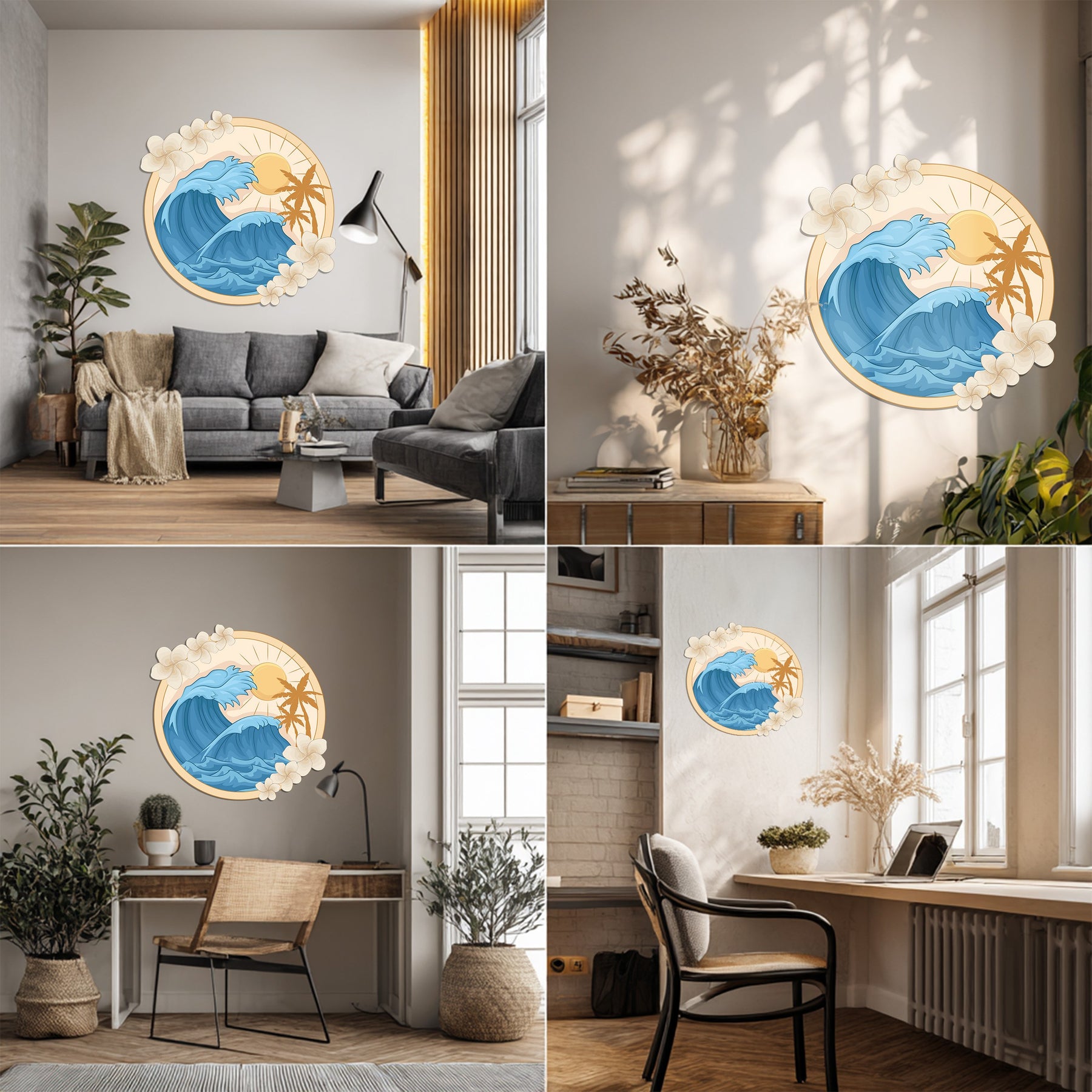 Perfect for beach houses, living rooms, or vacation-inspired interiors, this piece radiates calm energy and artistic vibrancy. Crafted from premium UV-protected metal, it’s fade-resistant, durable, and easy to hang — ensuring your wall decor remains bright and captivating for years.