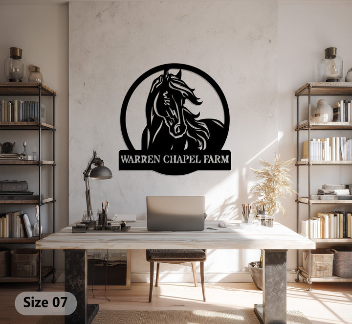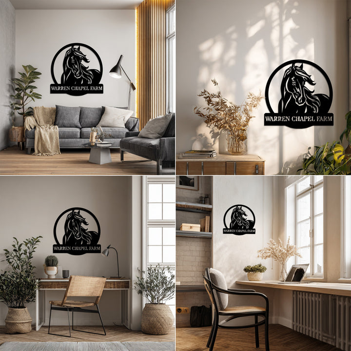 Warren Chapel Farm Metal Wall Art – Custom Horse Farm Name Sign